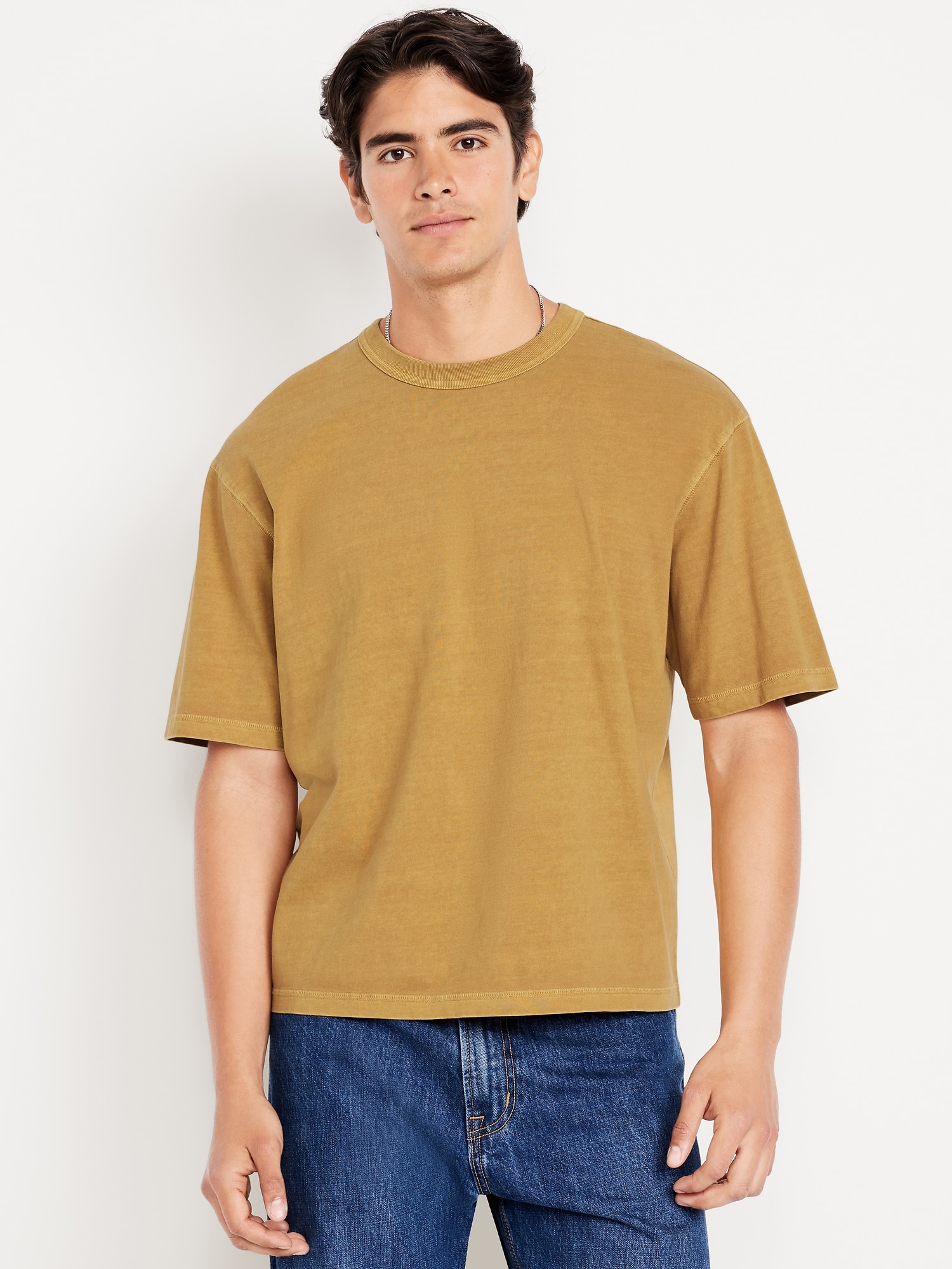 Garment-Dyed Cropped T-Shirt: rib-knit crew neck, short sleeves, #719209