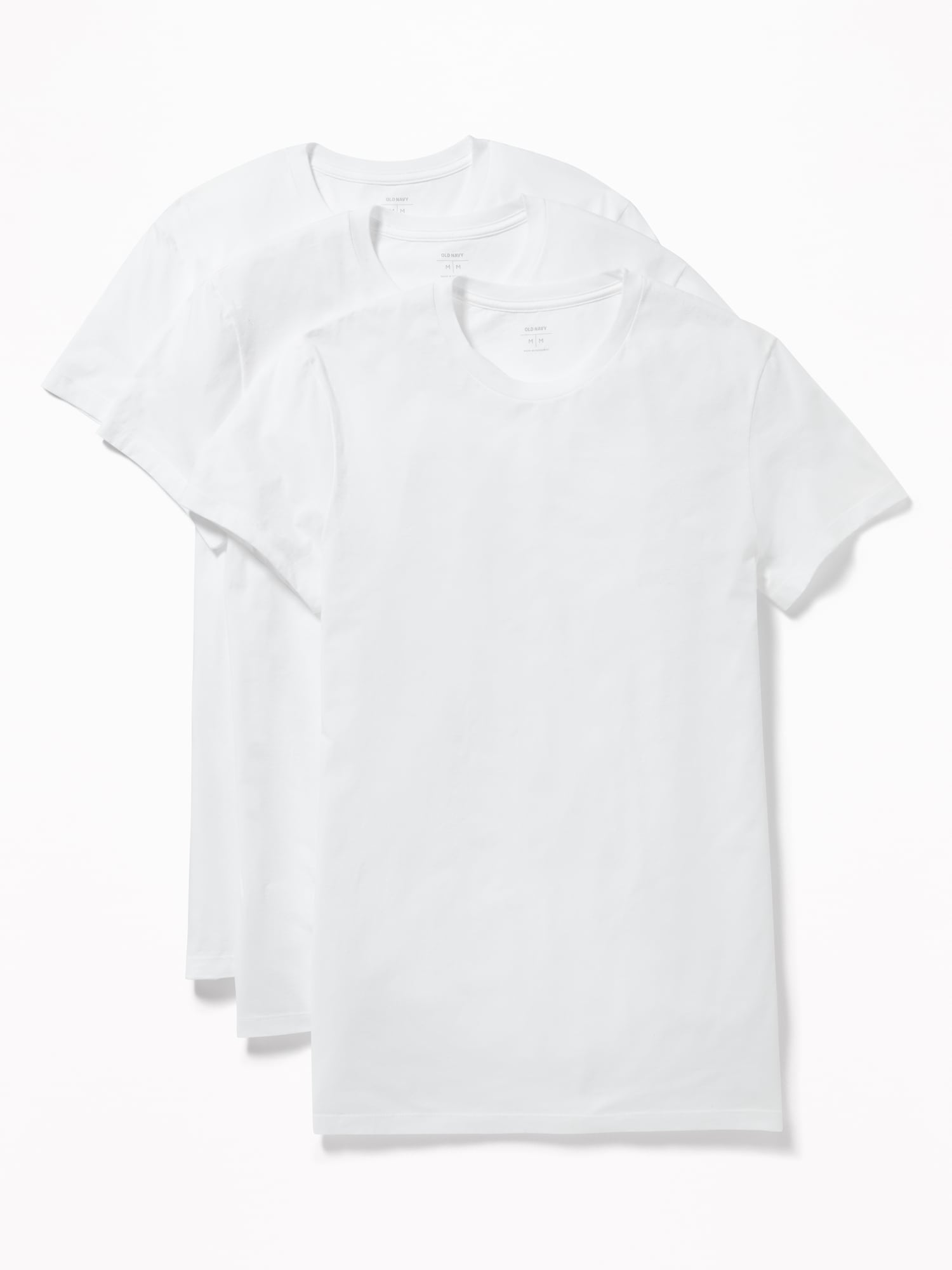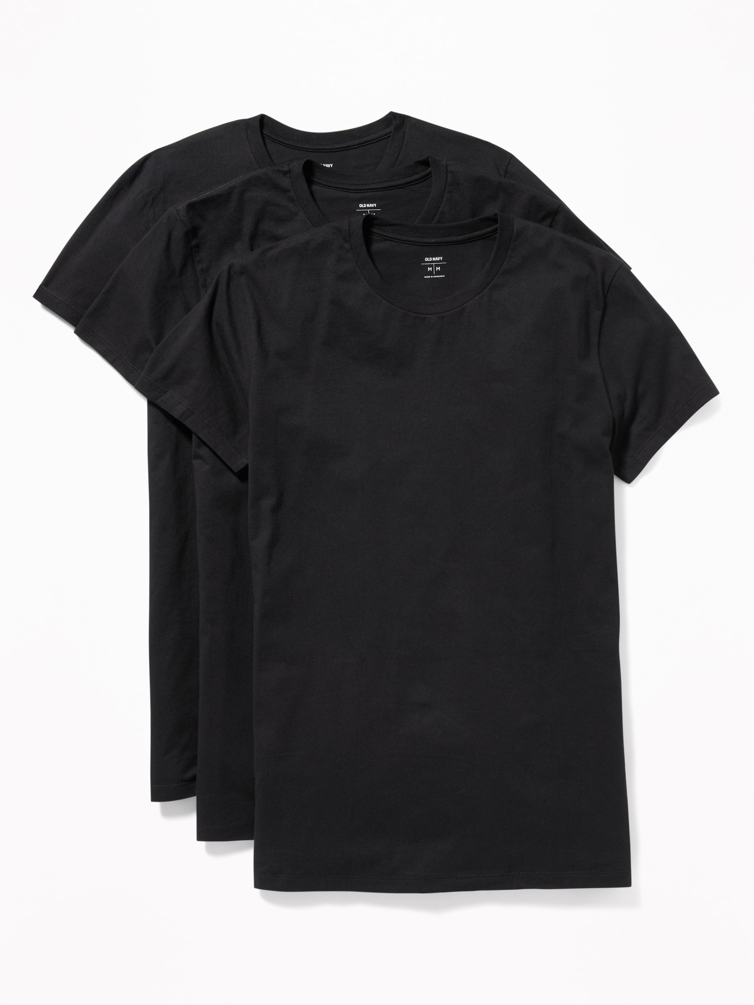 Go-Dry Crew-Neck T-Shirts 3-Pack: Pack includes 3 crew-neck tees., Rib-knit crew-neck., Short sleeves., Go-Dry moisture-wicking technology helps keep you dry and comfortable., Pieced trim inside neck for added durability., Tag-free for added comfort., Basic Multi Pack only: 100% cotton (solid colors); 60% cotton, 40% polyester (heather gray color only)., #209758