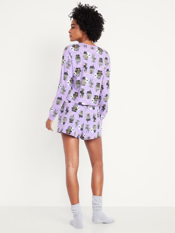 Halloween Pajama Short Set: set includes sleep top and coordinating shorts, crew neck, long drop-shoulder sleeves, elastic-waist sleep shorts, licensed graphic, © Disney, #804829