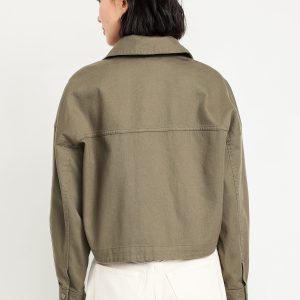 Harrington Zip Jacket: spread collar, drop-shoulder sleeves with snap cuffs, full-zip front, welt pockets, cinched hem, #790492