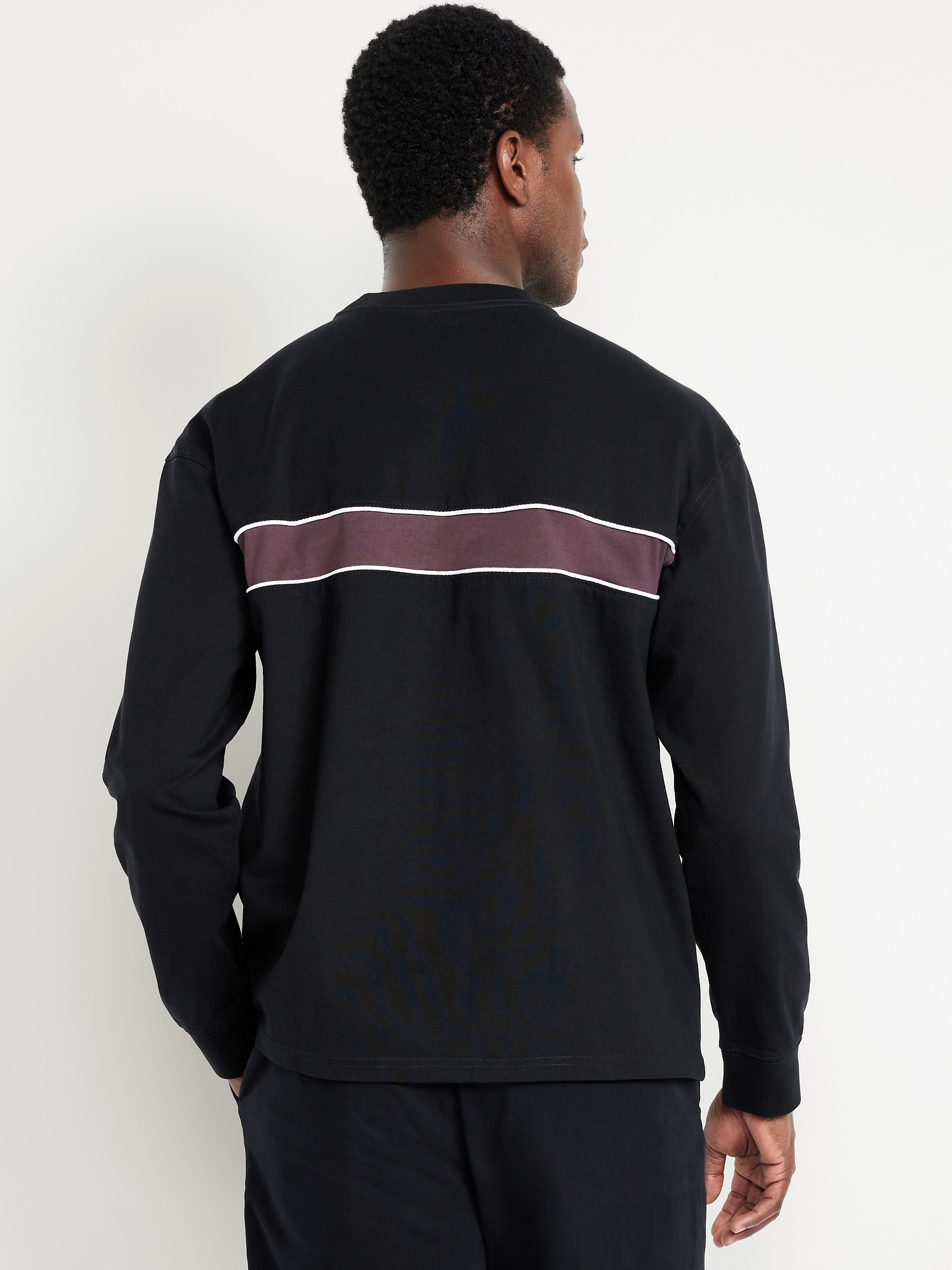 Heavyweight Chest-Stripe T-Shirt: rib-knit crew neck, long sleeves with rib-knit cuffs, contrasting chest stripes, #801794