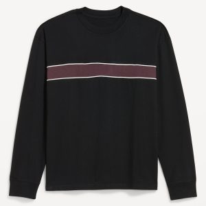 Heavyweight Chest-Stripe T-Shirt: rib-knit crew neck, long sleeves with rib-knit cuffs, contrasting chest stripes, #801794