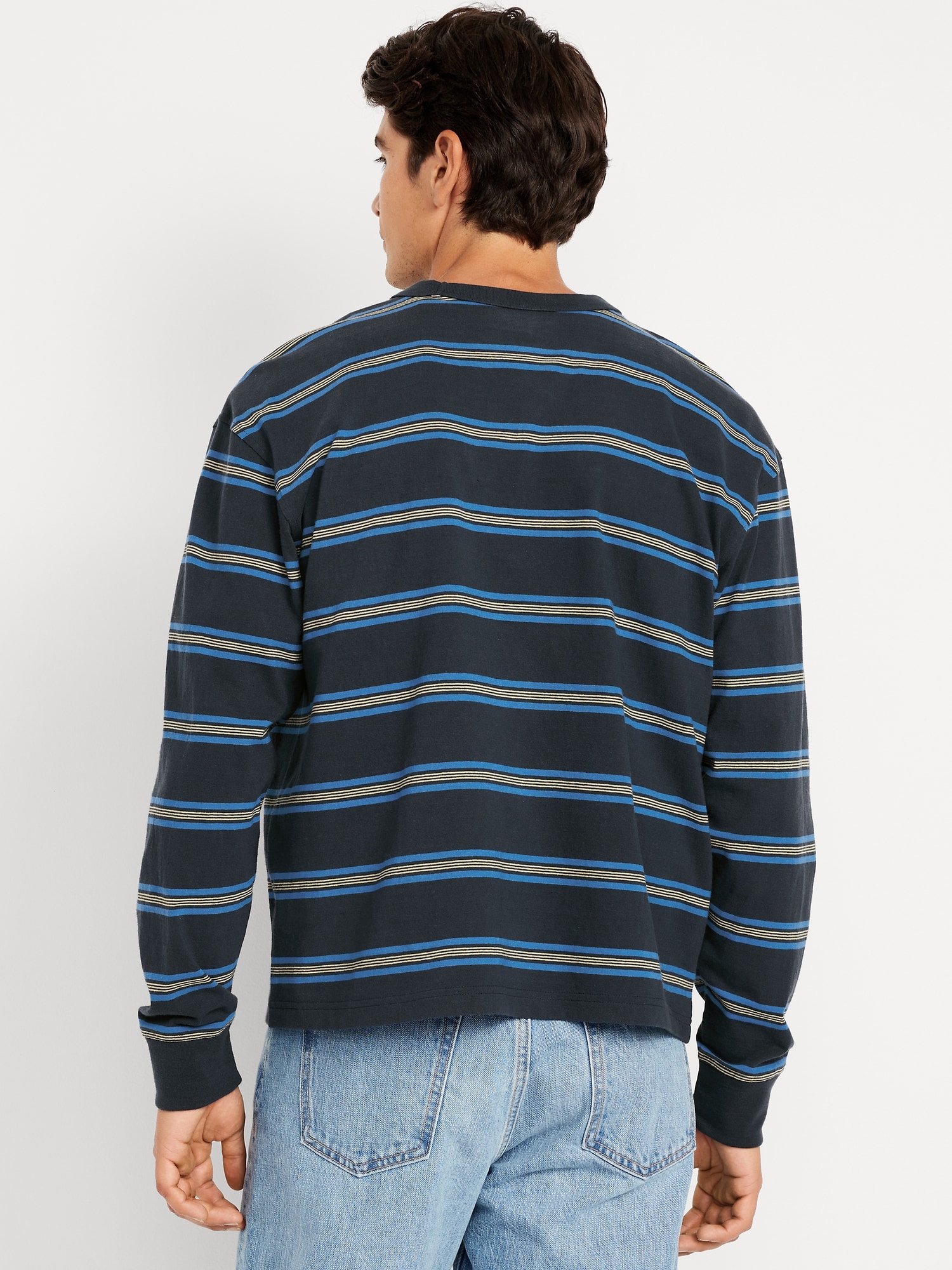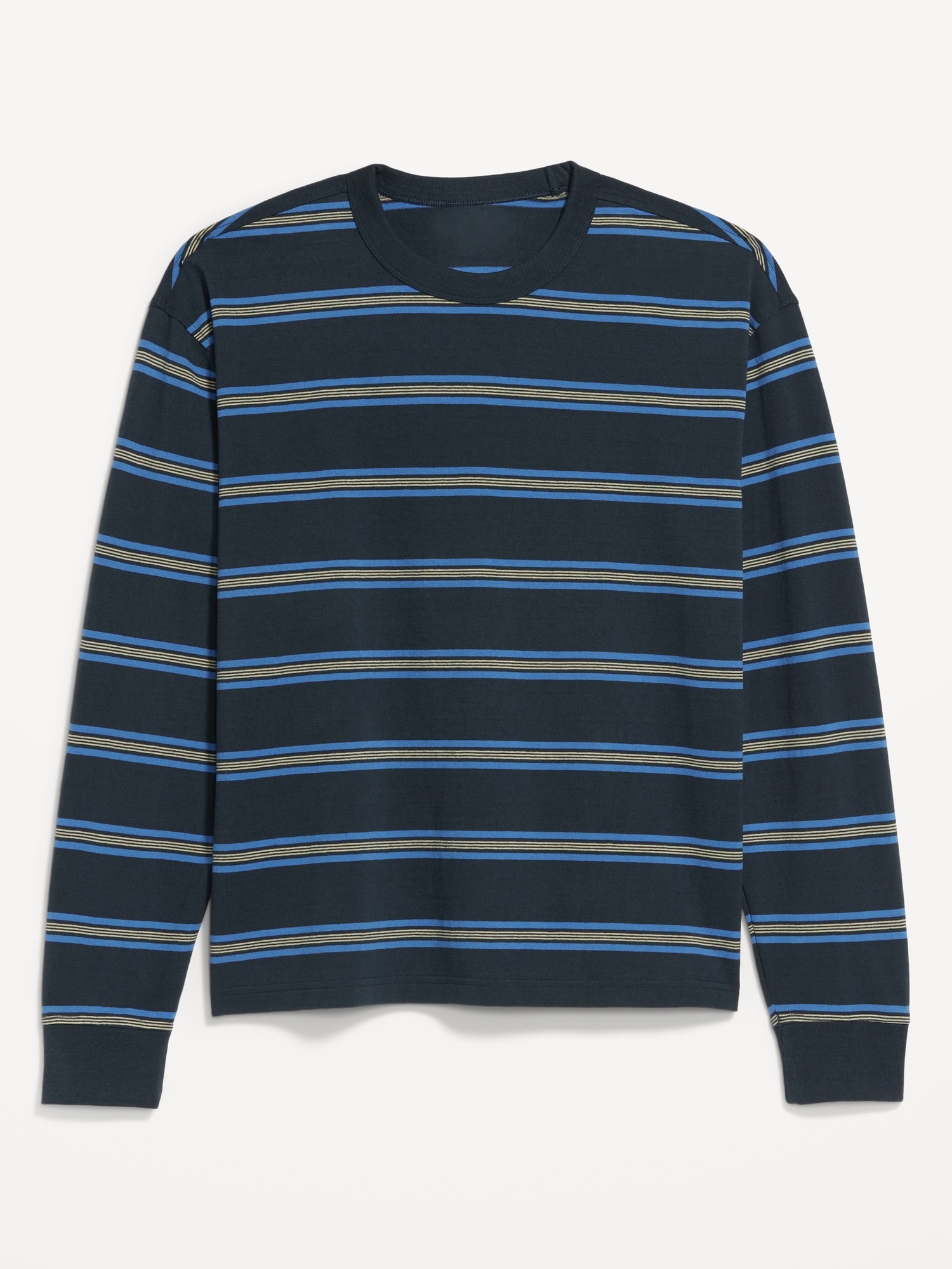 Heavyweight Cropped T-Shirt: crew neck, long sleeves, select colors have striped print, #801788