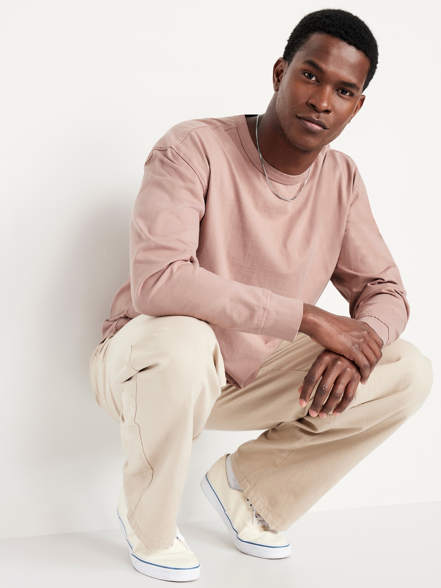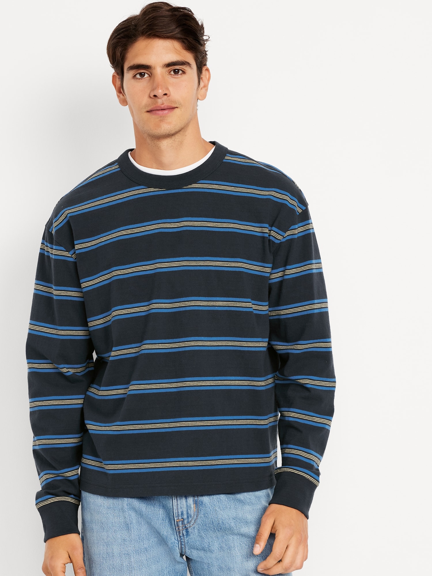 Heavyweight Cropped T-Shirt: crew neck, long sleeves, select colors have striped print, #801788