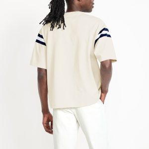 Heavyweight Football-Style T-Shirt: rib-knit crew neck, short sleeves with contrasting stripes, seamed yoke, #764263