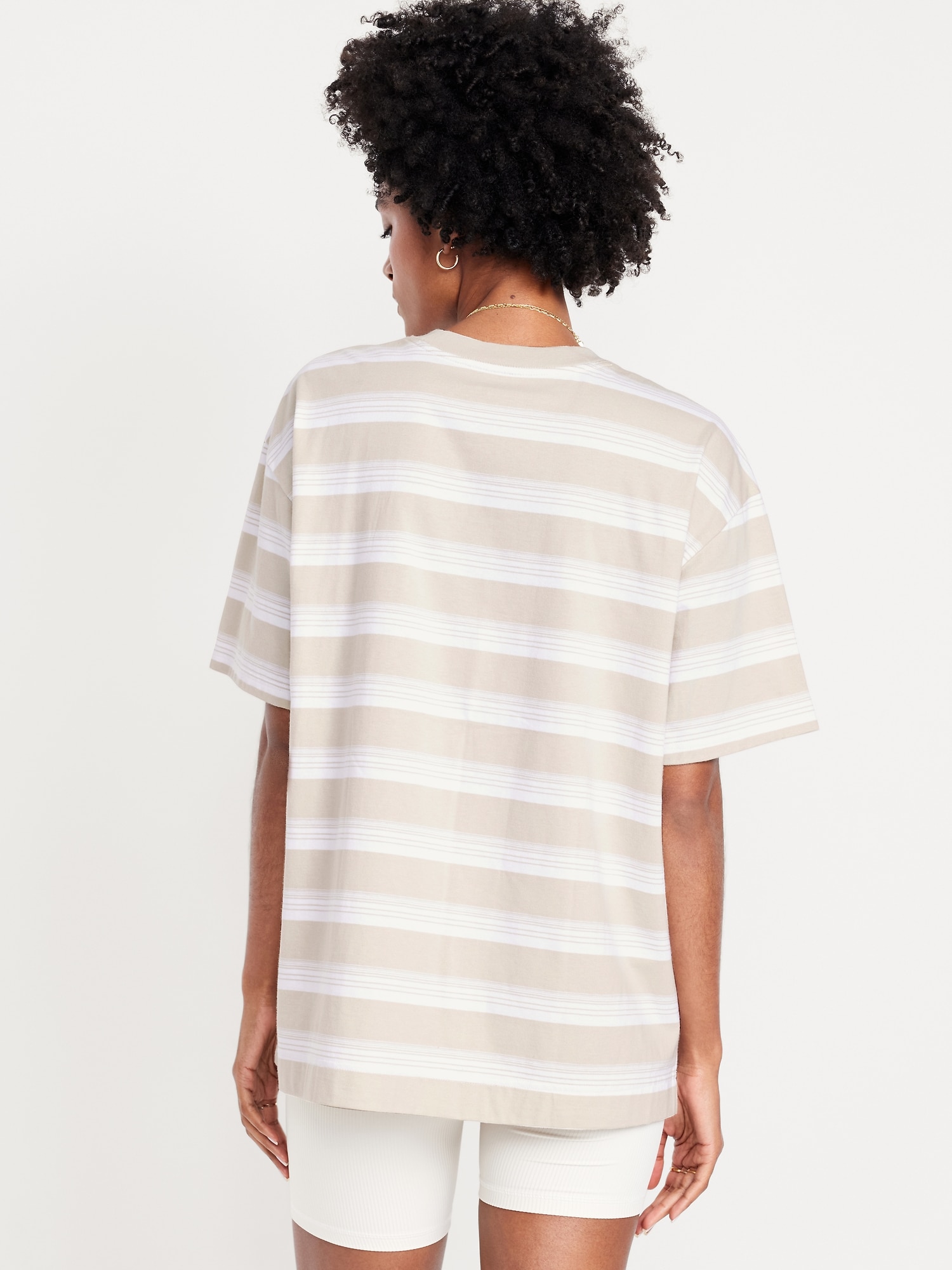 Heavyweight Oversized Striped T-Shirt: crew neck, short sleeves, striped print, #844565