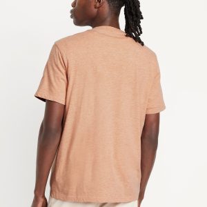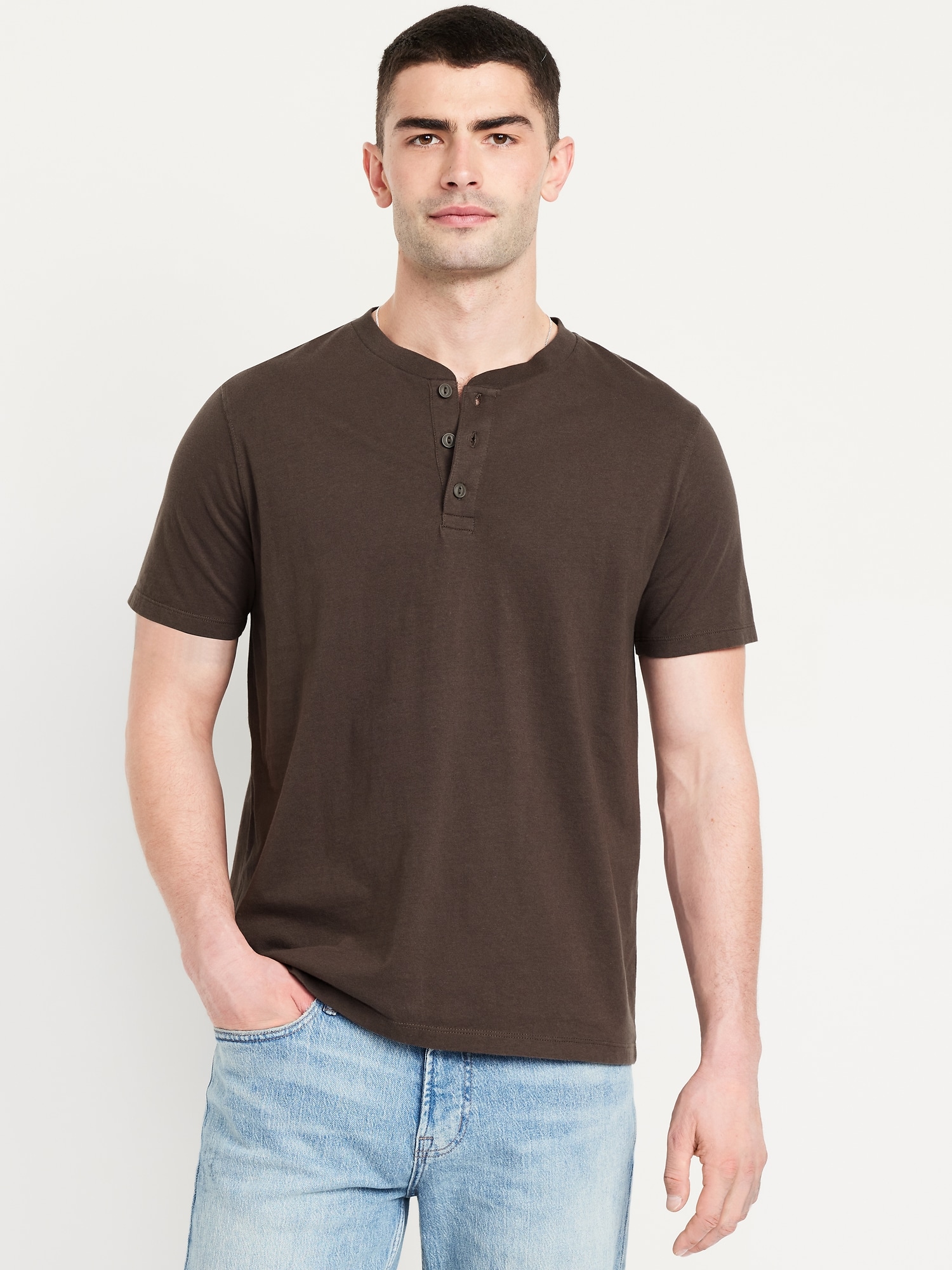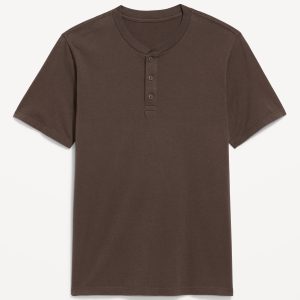 Henley T-Shirt: rib-knit crew neck, short sleeves, three-button henley placket, #687868