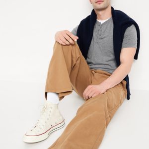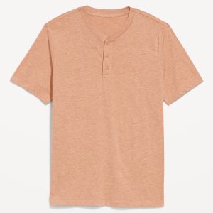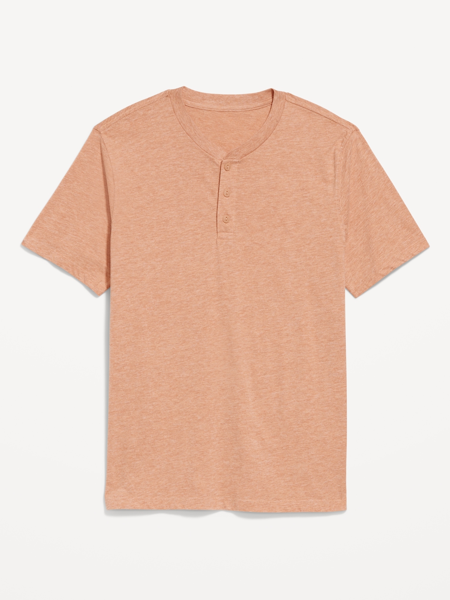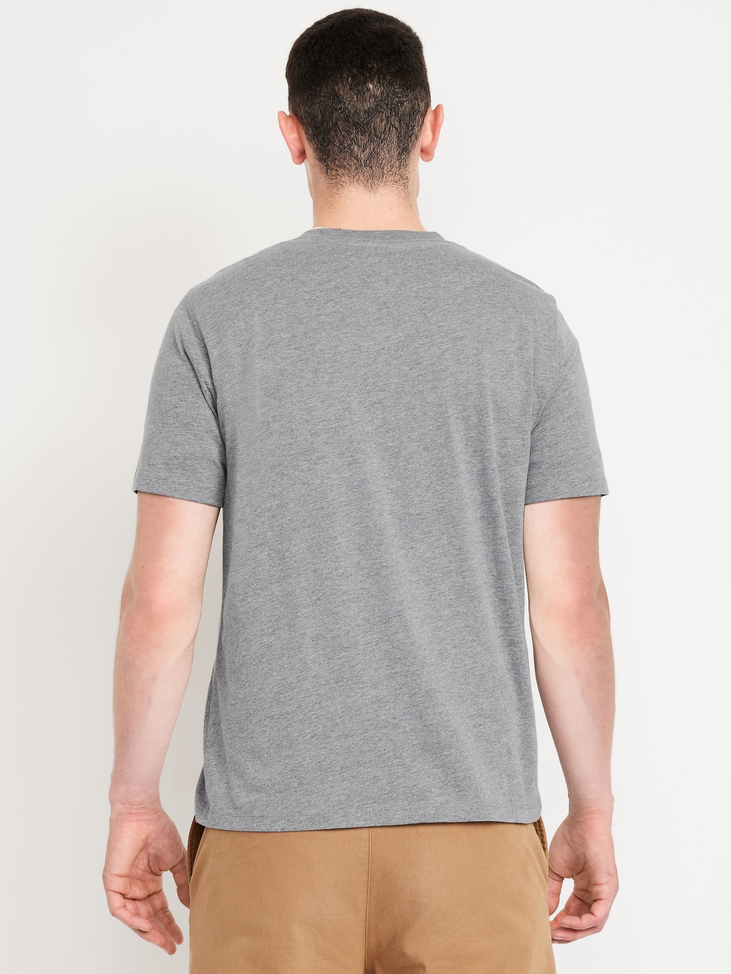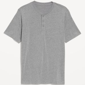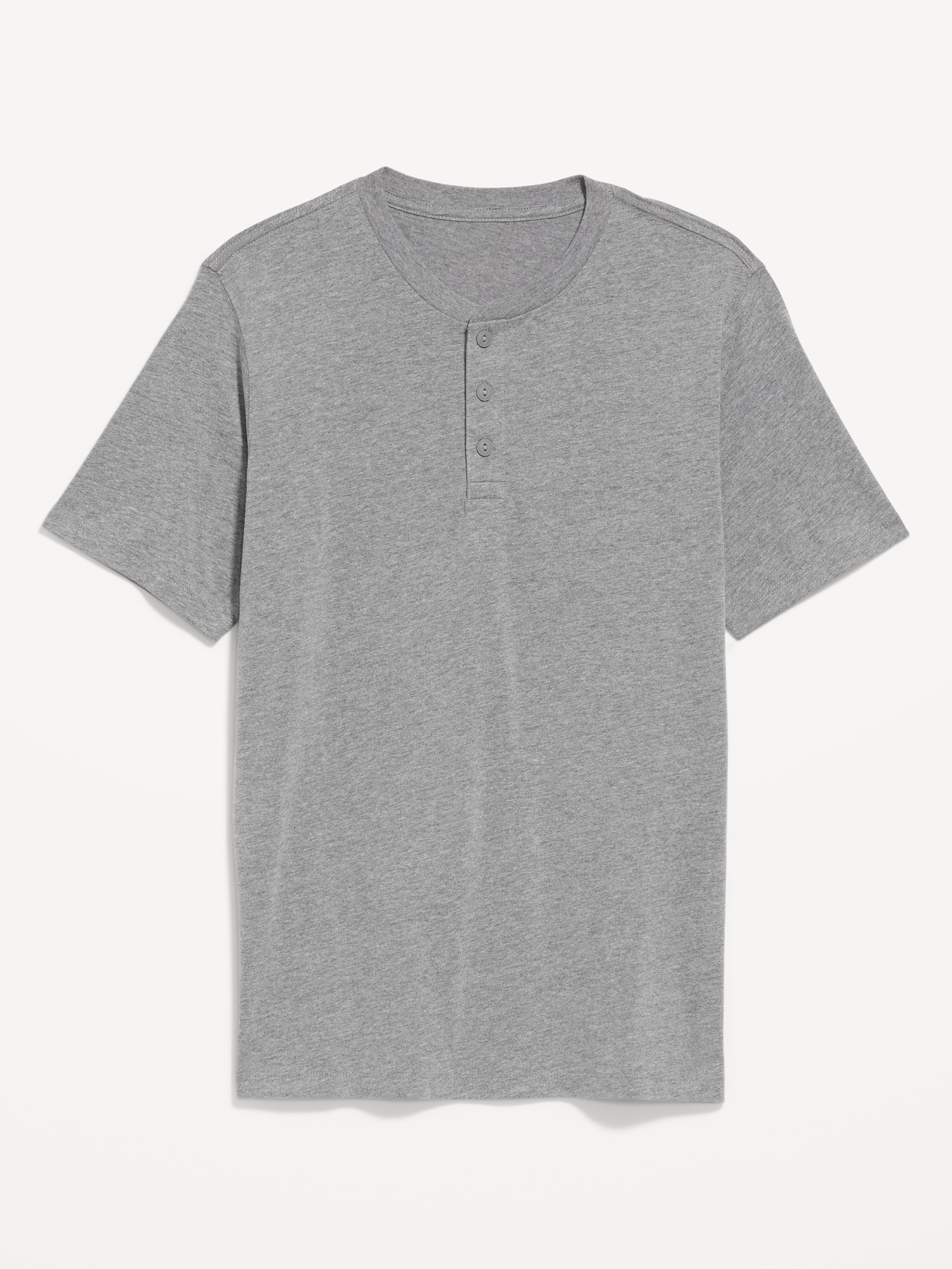Henley T-Shirt: rib-knit crew neck, short sleeves, three-button henley placket, #687868