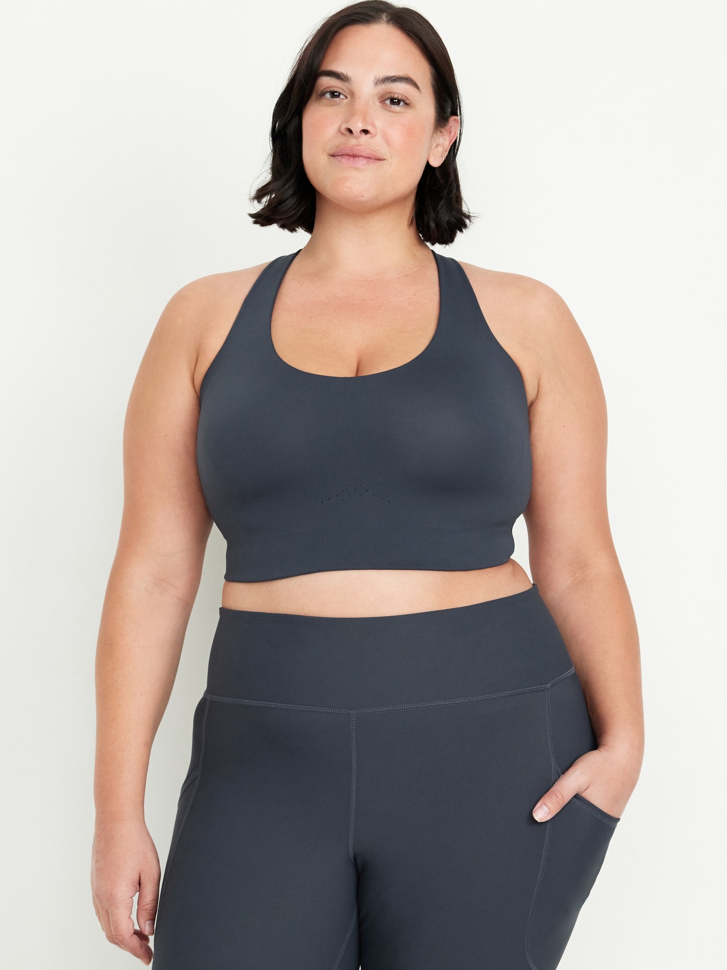 High Support PowerSoft Sports Bra: Featuring PowerSoft. Light compression meets a peachy-smooth, sweat-wicking fabric.v-neck, adjustable cross-back straps, back hook-and-eye closure, molded cups, go-dry wicks moisture, #559448