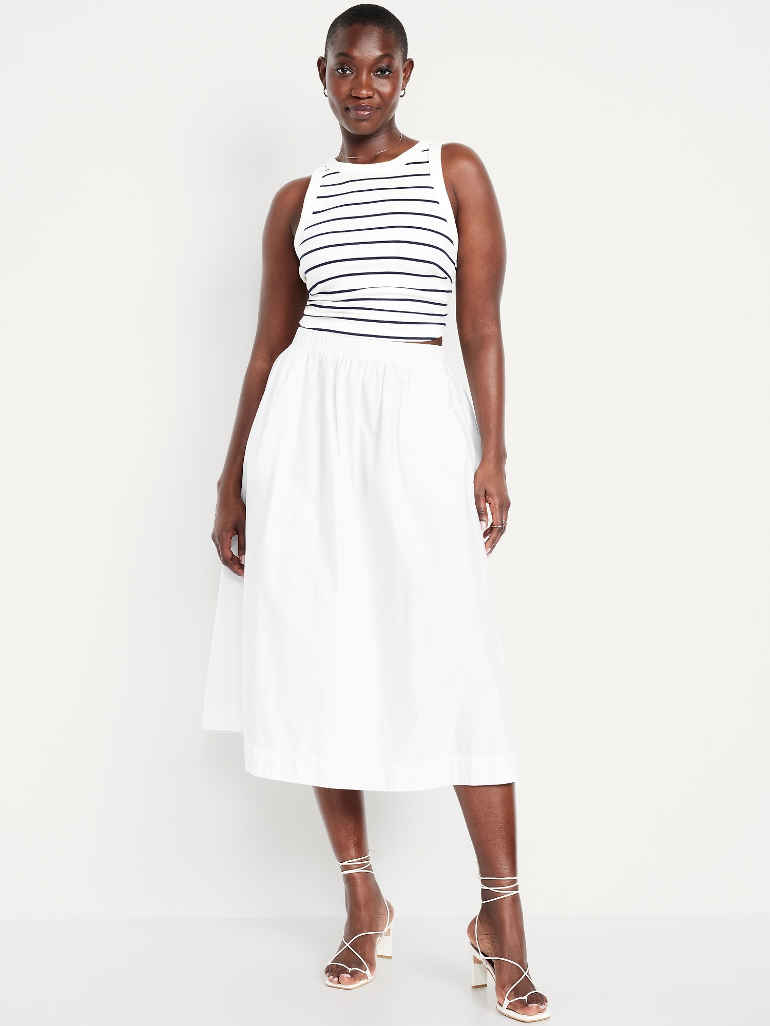 High-Waisted A-Line Midi Skirt