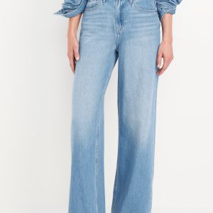 High-Waisted Baggy Wide-Leg Jeans: The oversized wide-leg jean of your teenage dreams.studded accent at sides, high waist, zip fly, #800683