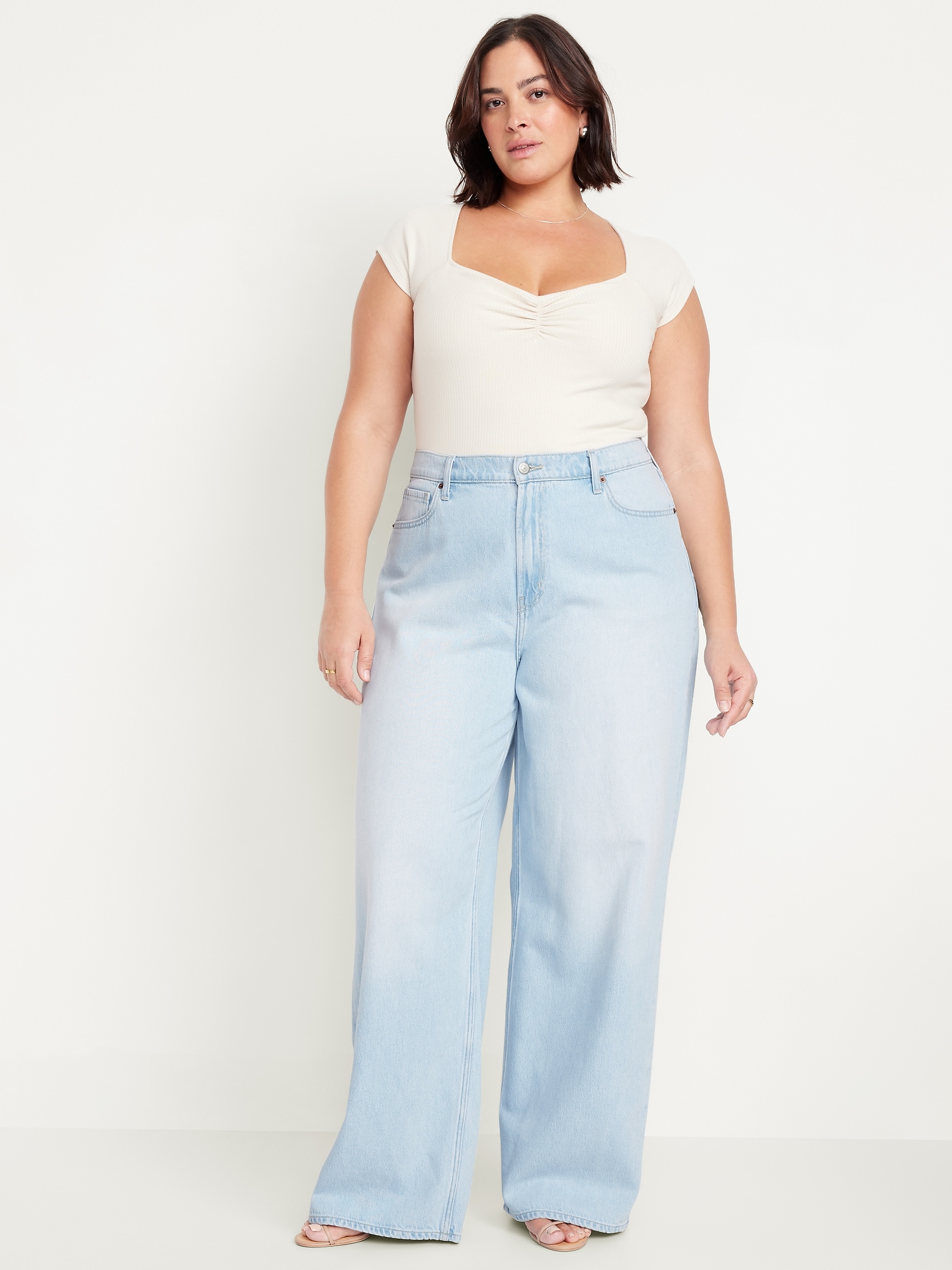 High-Waisted Baggy Wide-Leg Jeans: The oversized wide-leg jean of your teenage dreams.studded accent at sides, high waist, zip fly, #800683