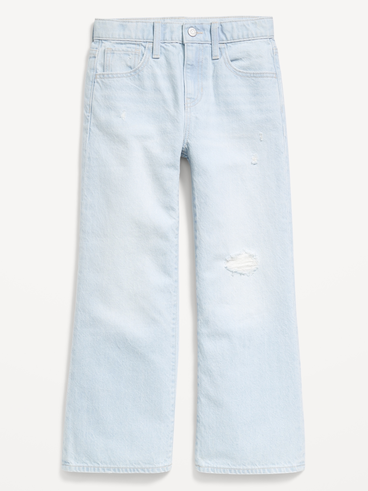 High-Waisted Baggy Wide-Leg Jeans for Girls: The it fits she really, really wants.interior adjustable waistband, snap button closure (sizes 5-8), regular button closure (sizes 10-20), zip fly, scoop pockets and coin pocket, patch pockets at back, wide leg opening, #803677