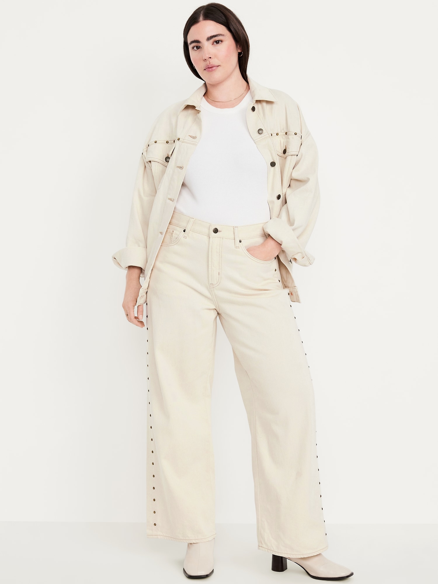 High-Waisted Baggy Wide-Leg Studded Jeans