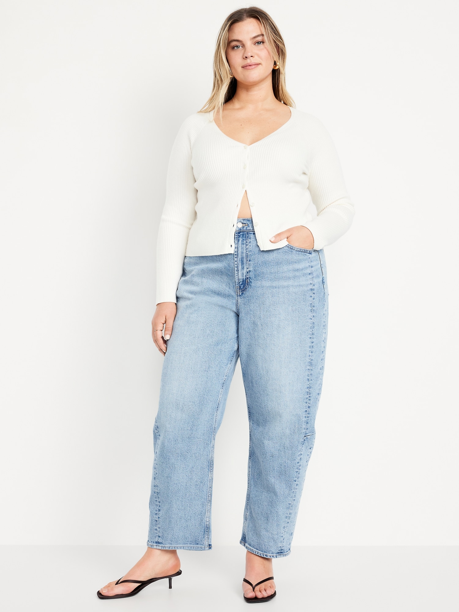 High-Waisted Barrel Ankle Jeans: A curved, tapered leg and proportion play from hip to hem.high waisted, zip fly, seamed barrel leg, #804566