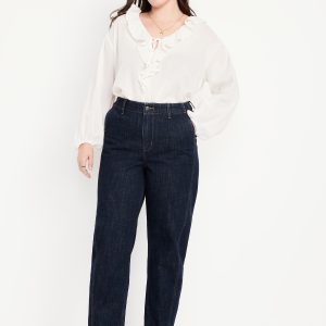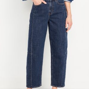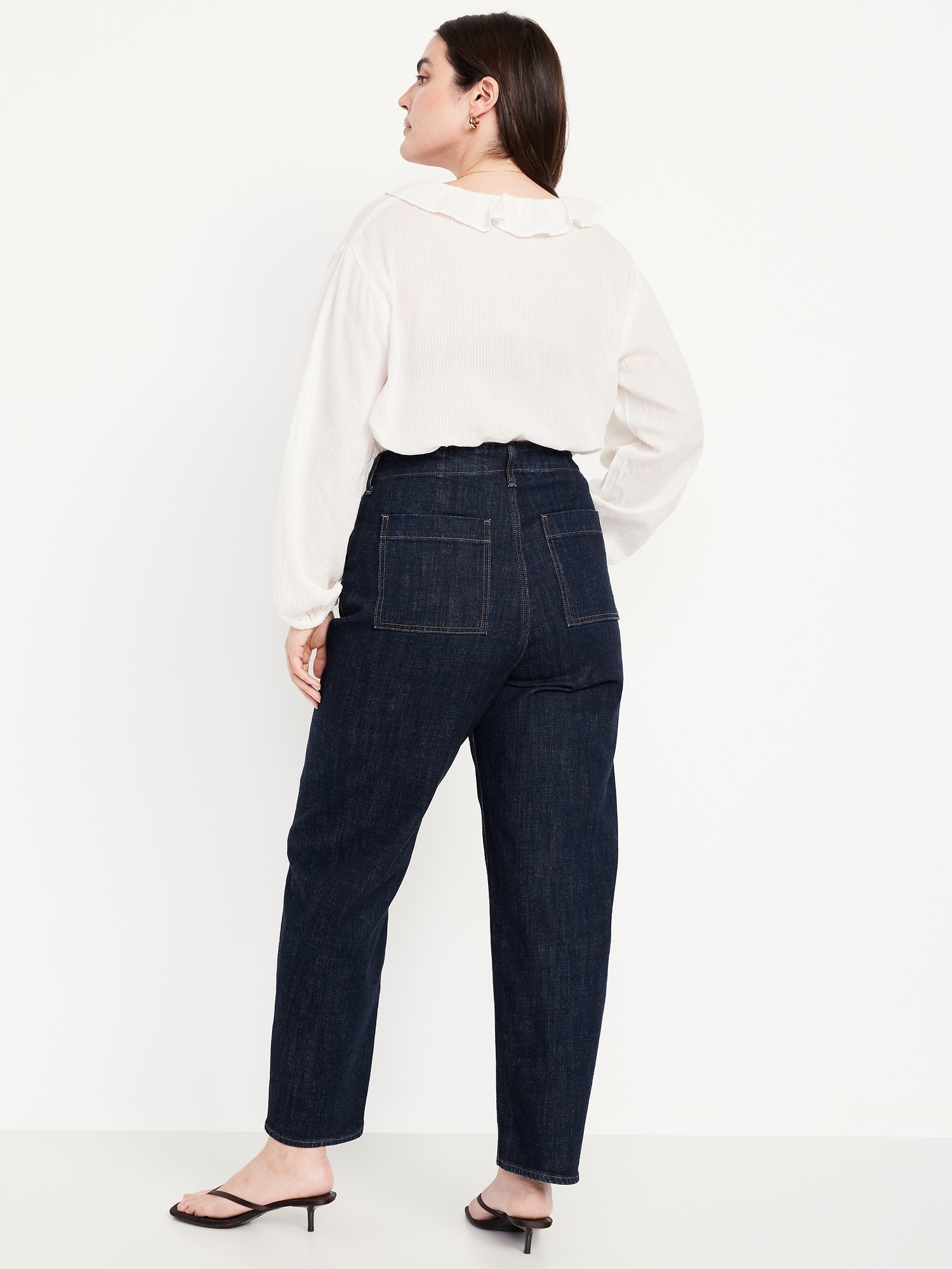 High-Waisted Barrel Ankle Jeans: A curved, tapered leg and proportion play from hip to hem.high waisted, zip fly, seamed barrel leg, #804566