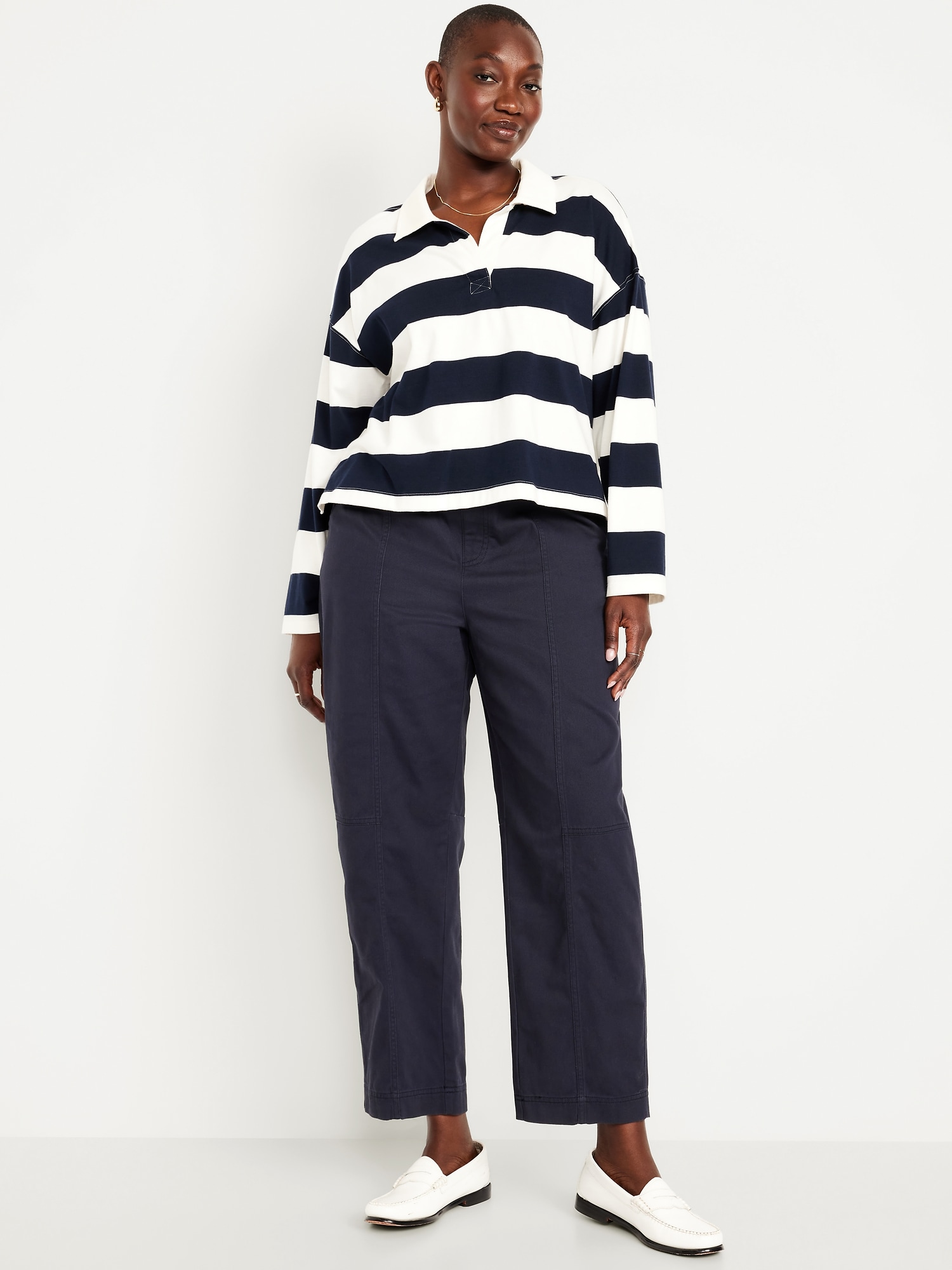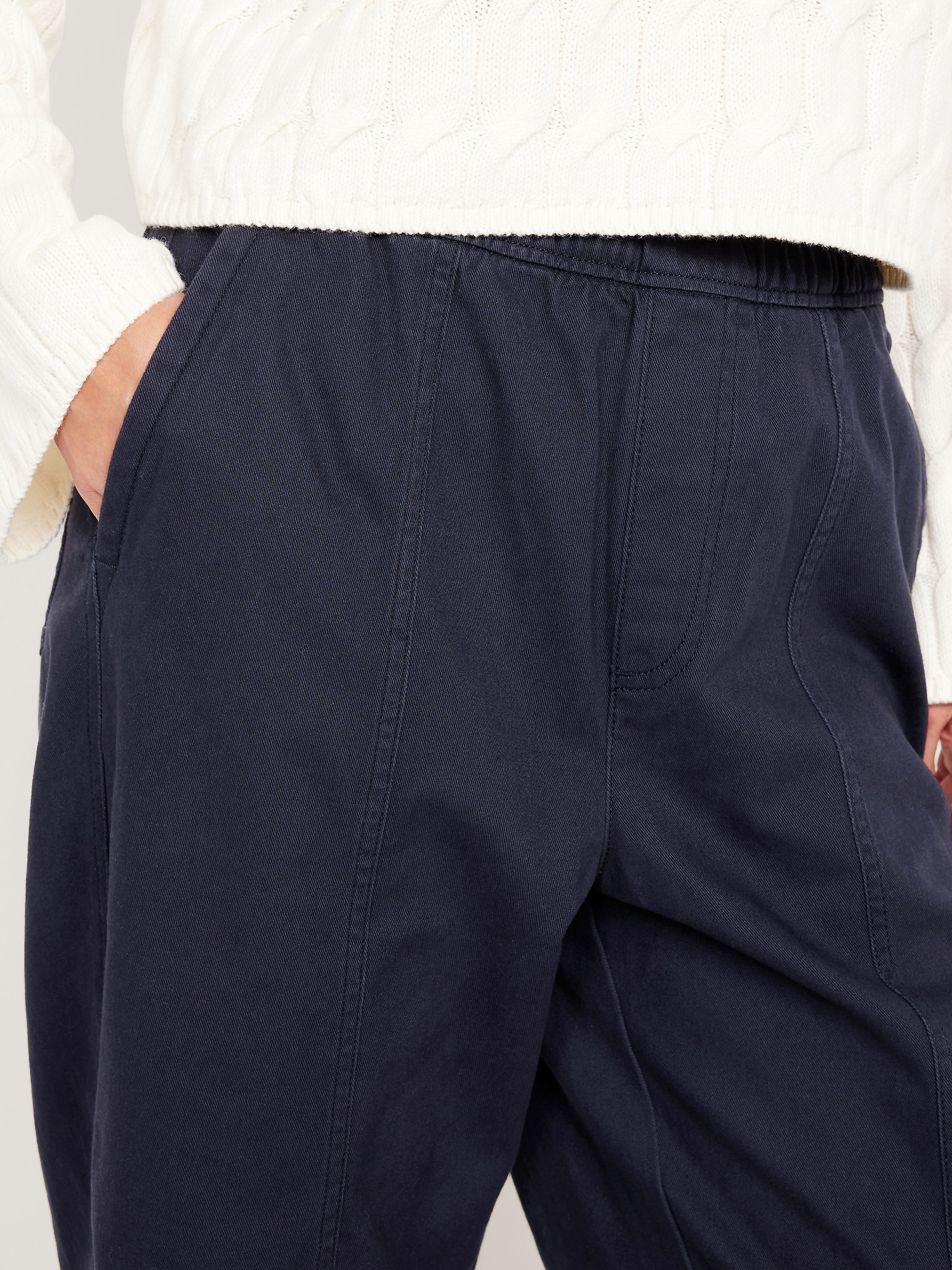 High-Waisted Barrel Ankle Pants: The effortless curved shape that’s so hot right now.comfort-elastic pull-on waistband, diagonal front pockets, back patch pockets, darted knee, seamed leg, #801608