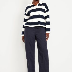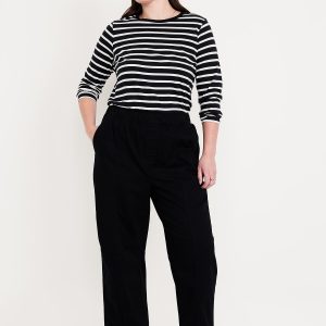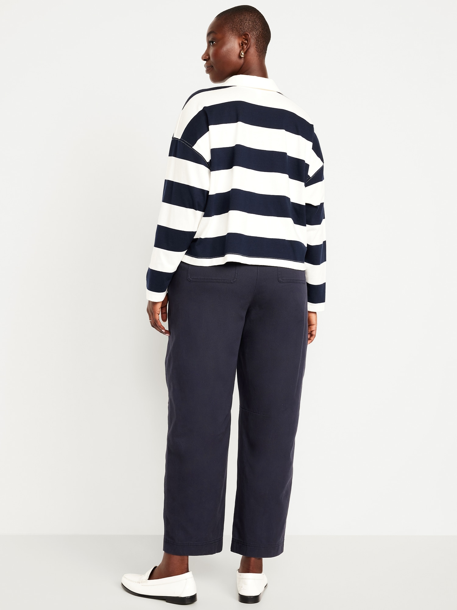 High-Waisted Barrel Ankle Pants: The effortless curved shape that’s so hot right now.comfort-elastic pull-on waistband, diagonal front pockets, back patch pockets, darted knee, seamed leg, #801608