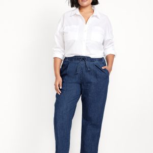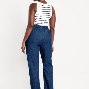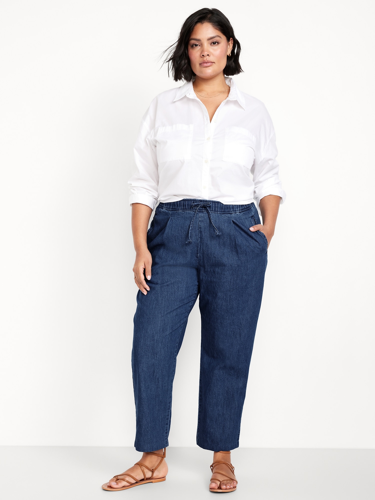 High-Waisted Billie Straight Ankle Trouser: A pleated pull-on pant for work and play.comfort elastic-drawstring waist, hip pockets, back right welt pocket, #799291
