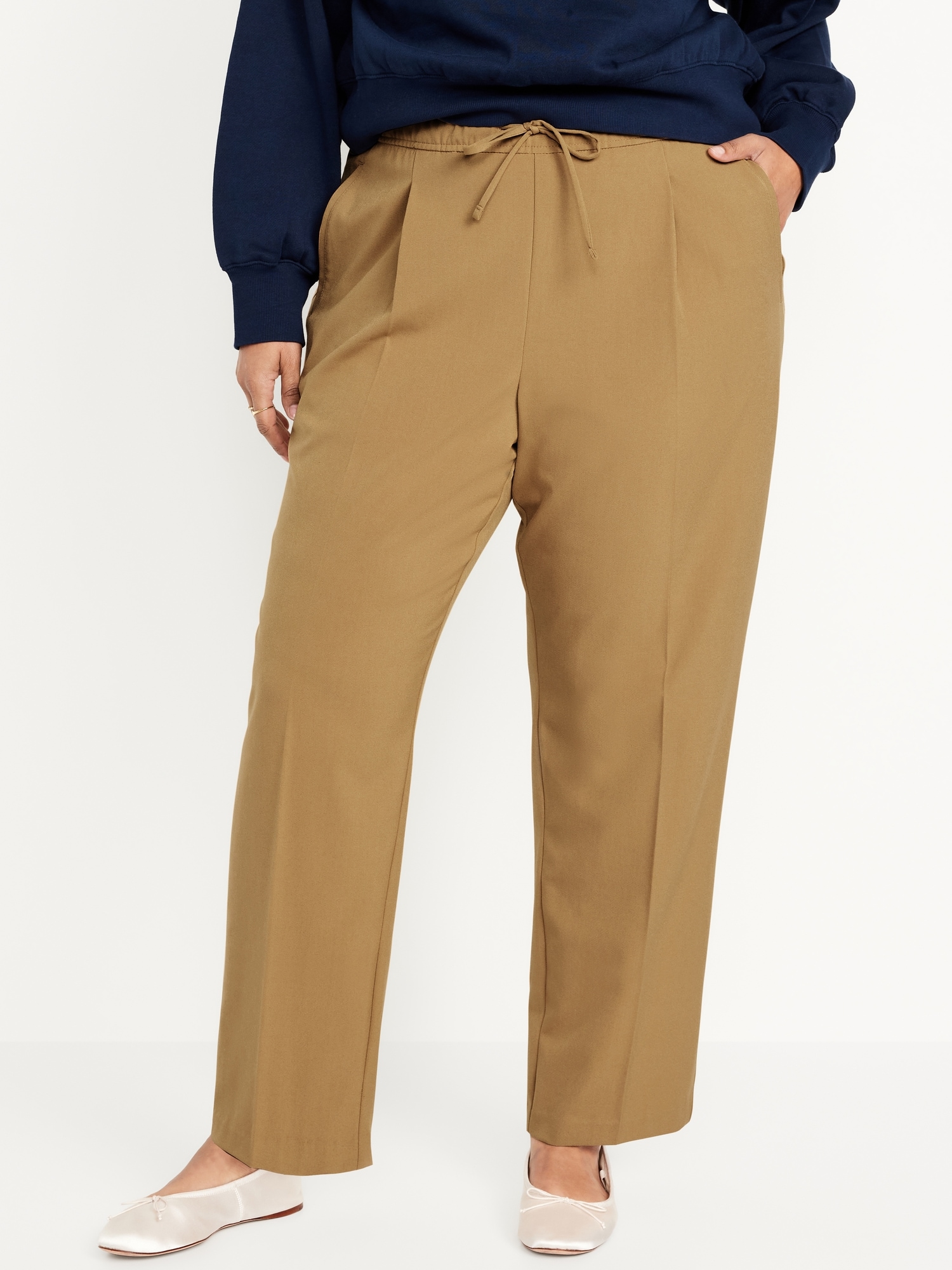 High-Waisted Billie Straight Ankle Trouser: A pleated pull-on pant for work and play.comfort elastic-drawstring waist, hip pockets, back right welt pocket, #799291