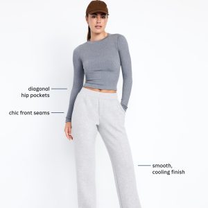 High-Waisted Bounce Fleece Trouser Sweatpants: Featuring Bounce Fleece. A smooth, cooling finish that feels good and looks chic everywhere you go.seamed front leg, hip pockets, back right welt pocket, breathable, pull-on style, #784453