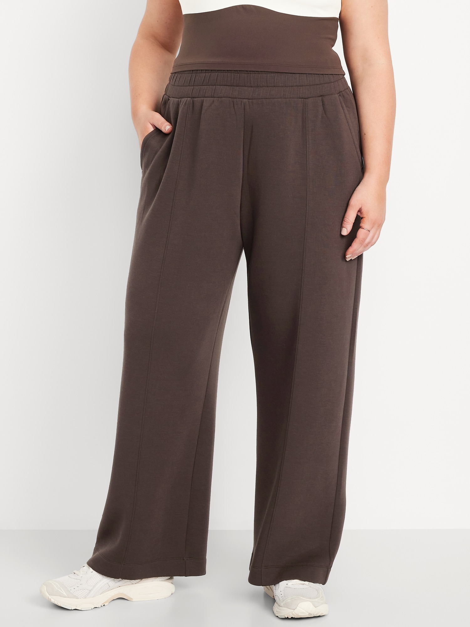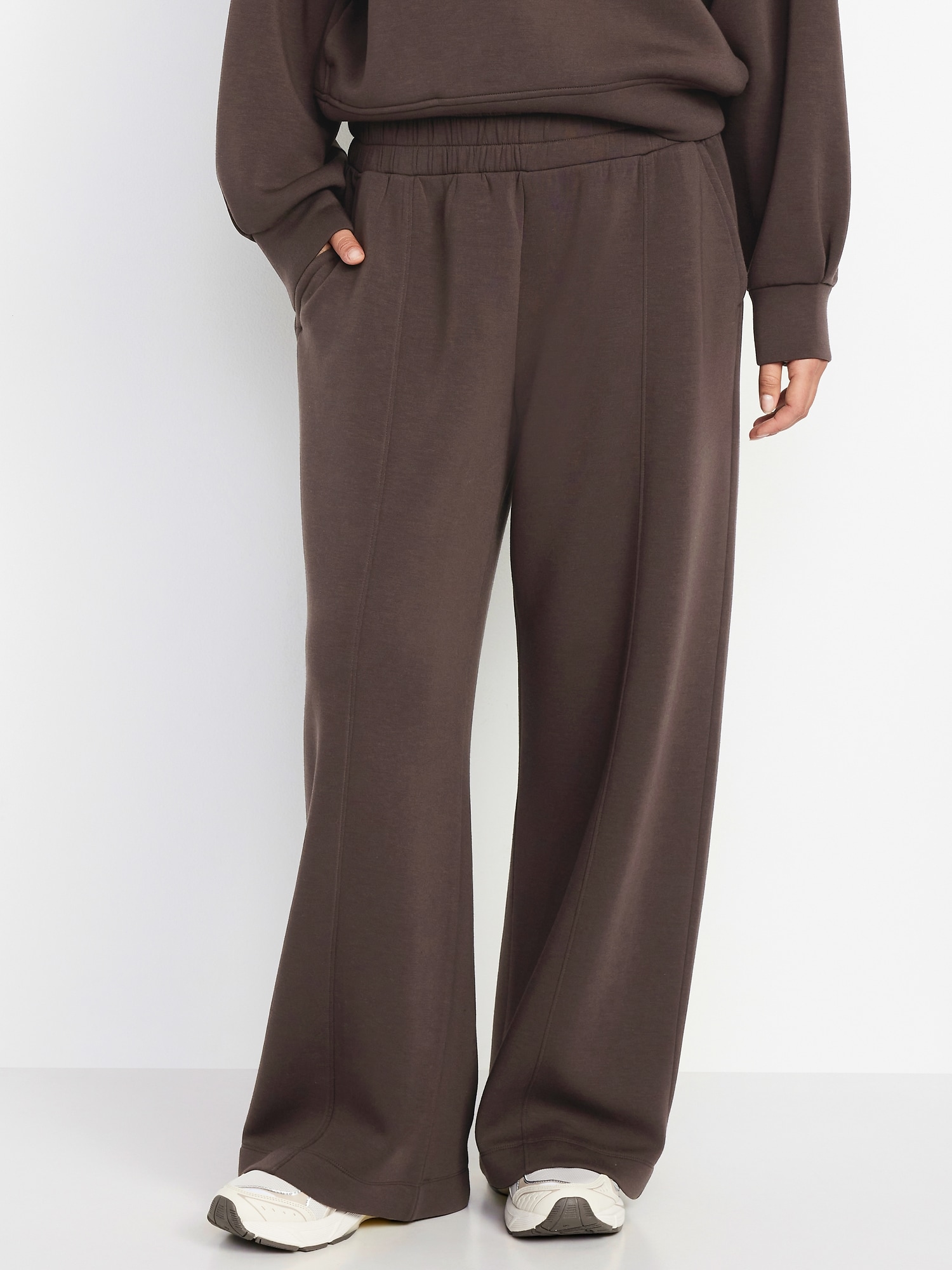 High-Waisted Bounce Fleece Wide-Leg Sweatpants: Featuring Bounce Fleece. A smooth, cooling finish that feels good and looks chic everywhere you go.elasticized waist, hip pockets, seamed front leg, pull-on style, breathable, #583458