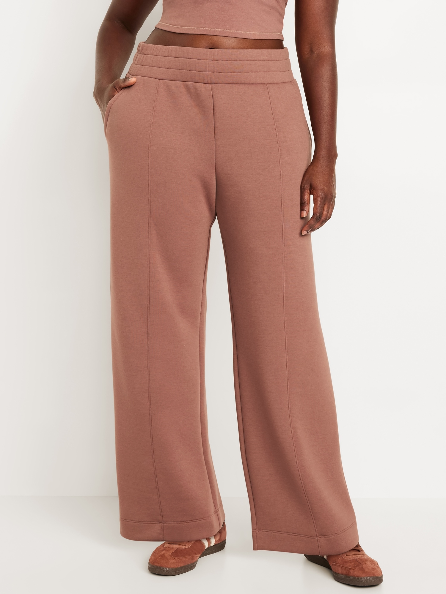 High-Waisted Bounce Fleece Wide-Leg Sweatpants: Featuring Bounce Fleece. A smooth, cooling finish that feels good and looks chic everywhere you go.elasticized waist, hip pockets, seamed front leg, pull-on style, breathable, #583458