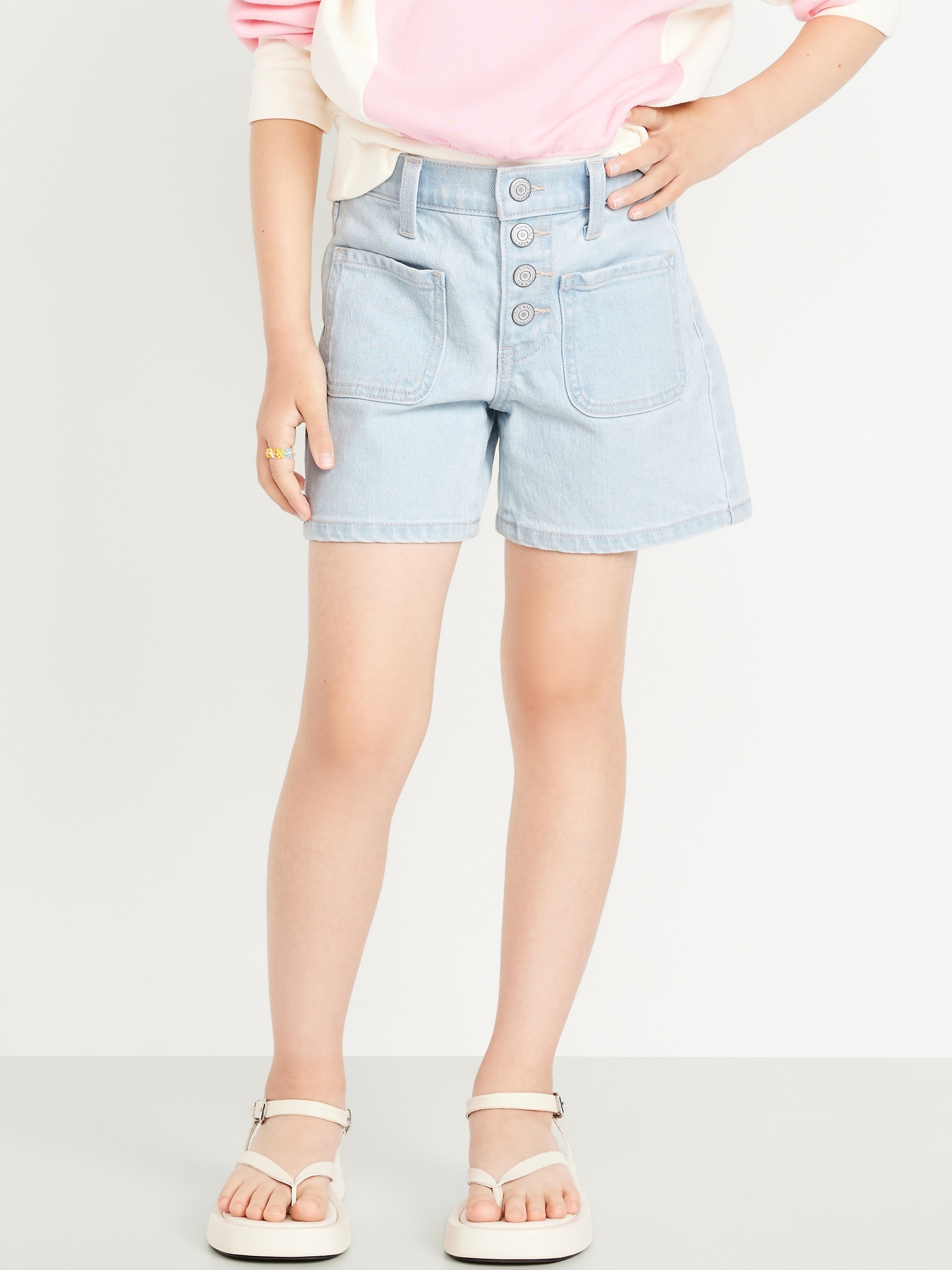 High-Waisted Button-Fly Mariner Jean Shorts for Girls