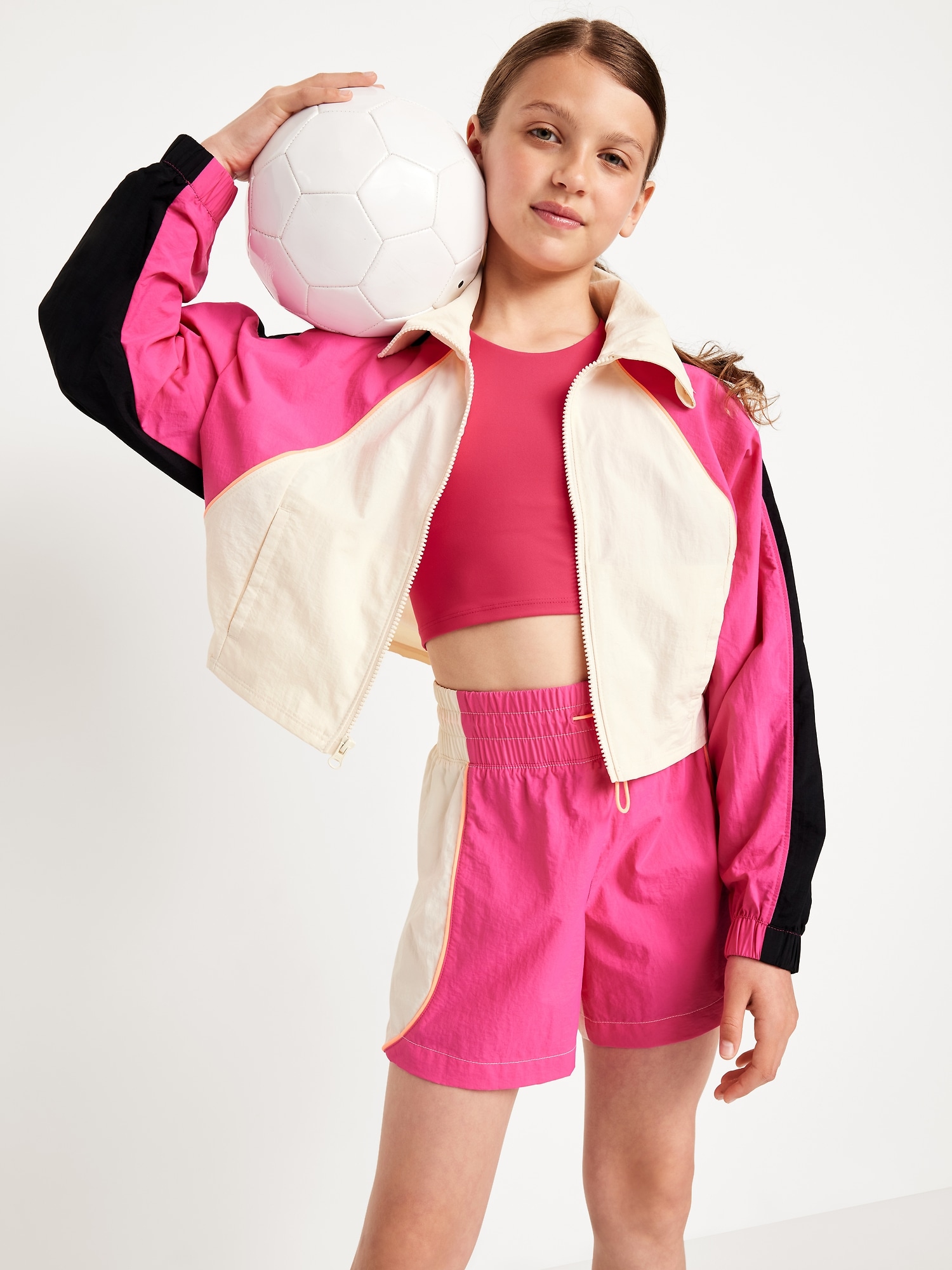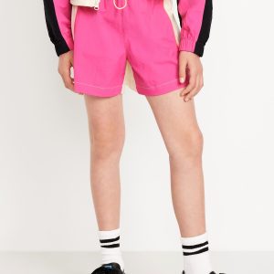 High-Waisted Color-Block Performance Shorts for Girls: high rise, elasticized waistband, adjustable drawcord, color block, #762153