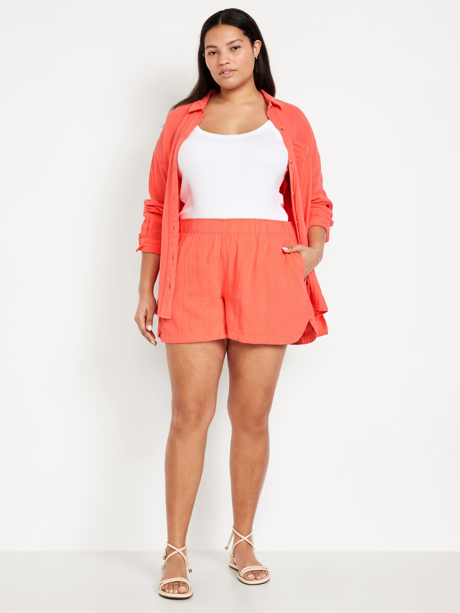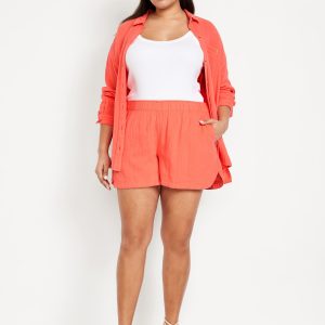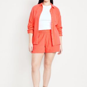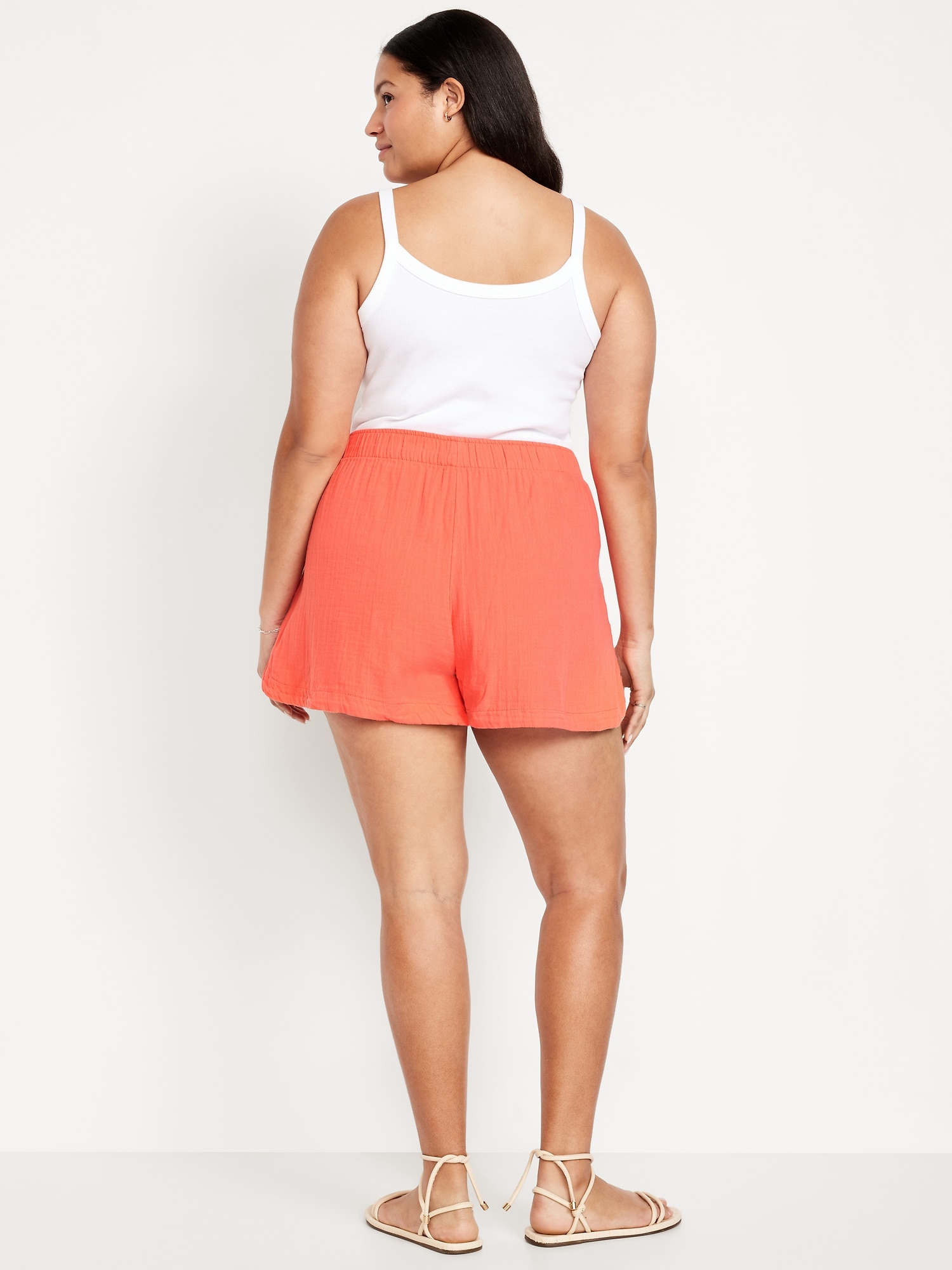 High-Waisted Crinkle Gauze Shorts — 4-inch inseam