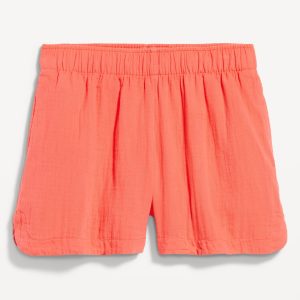 High-Waisted Crinkle Gauze Shorts — 4-inch inseam: A light, rippled fabric that’s begging to be beachside.comfort elastic waistband, on-seam side pockets, easy pull-on style, #692768