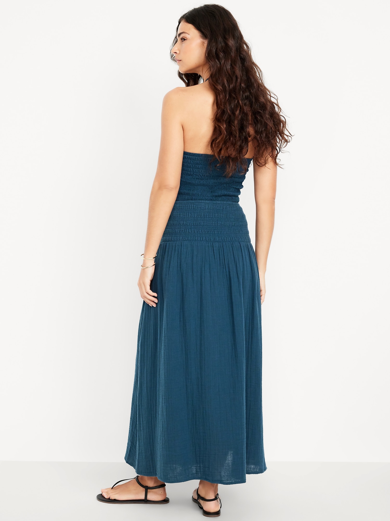 High-Waisted Crinkle Gauze Smocked Maxi Skirt