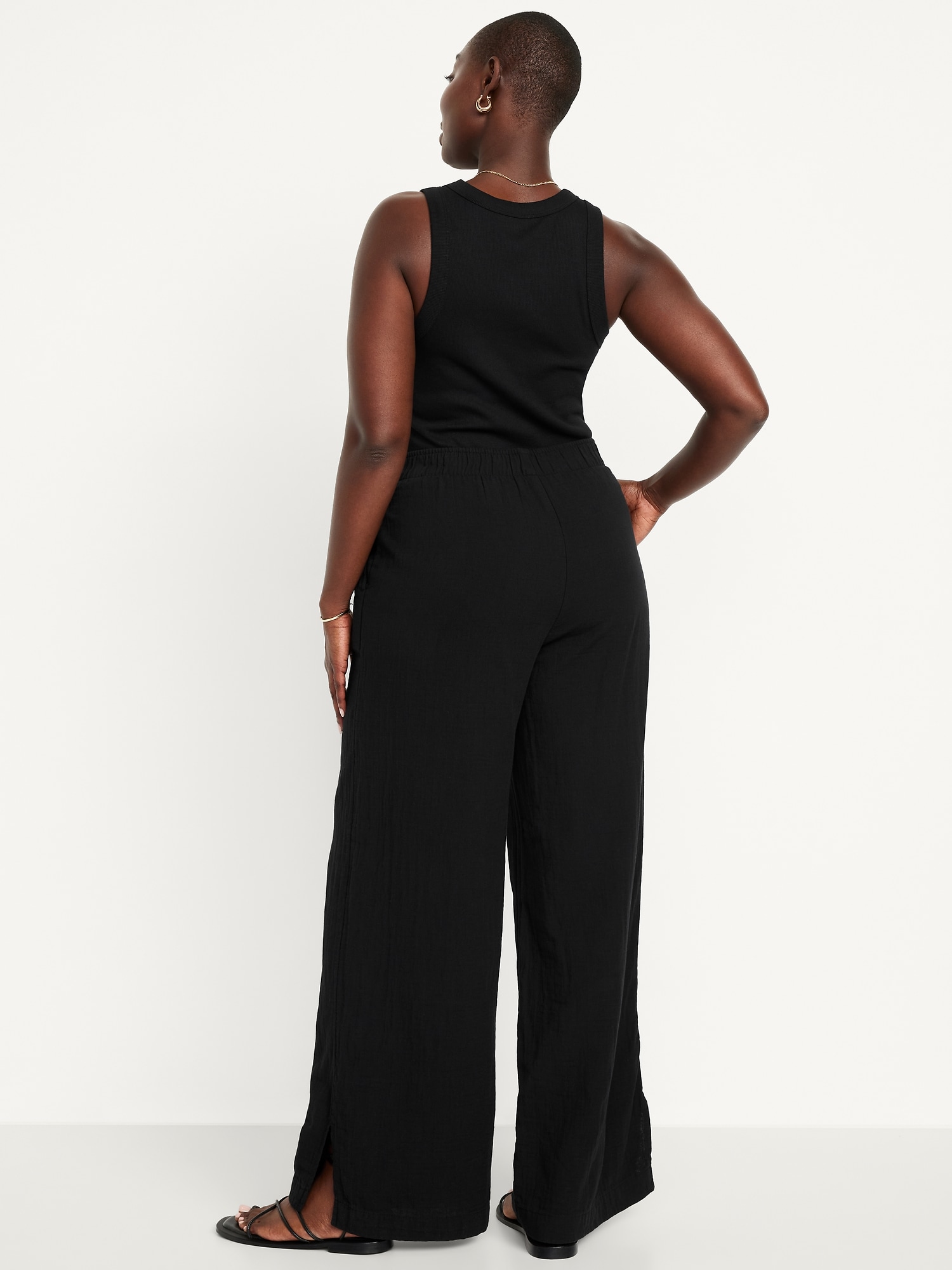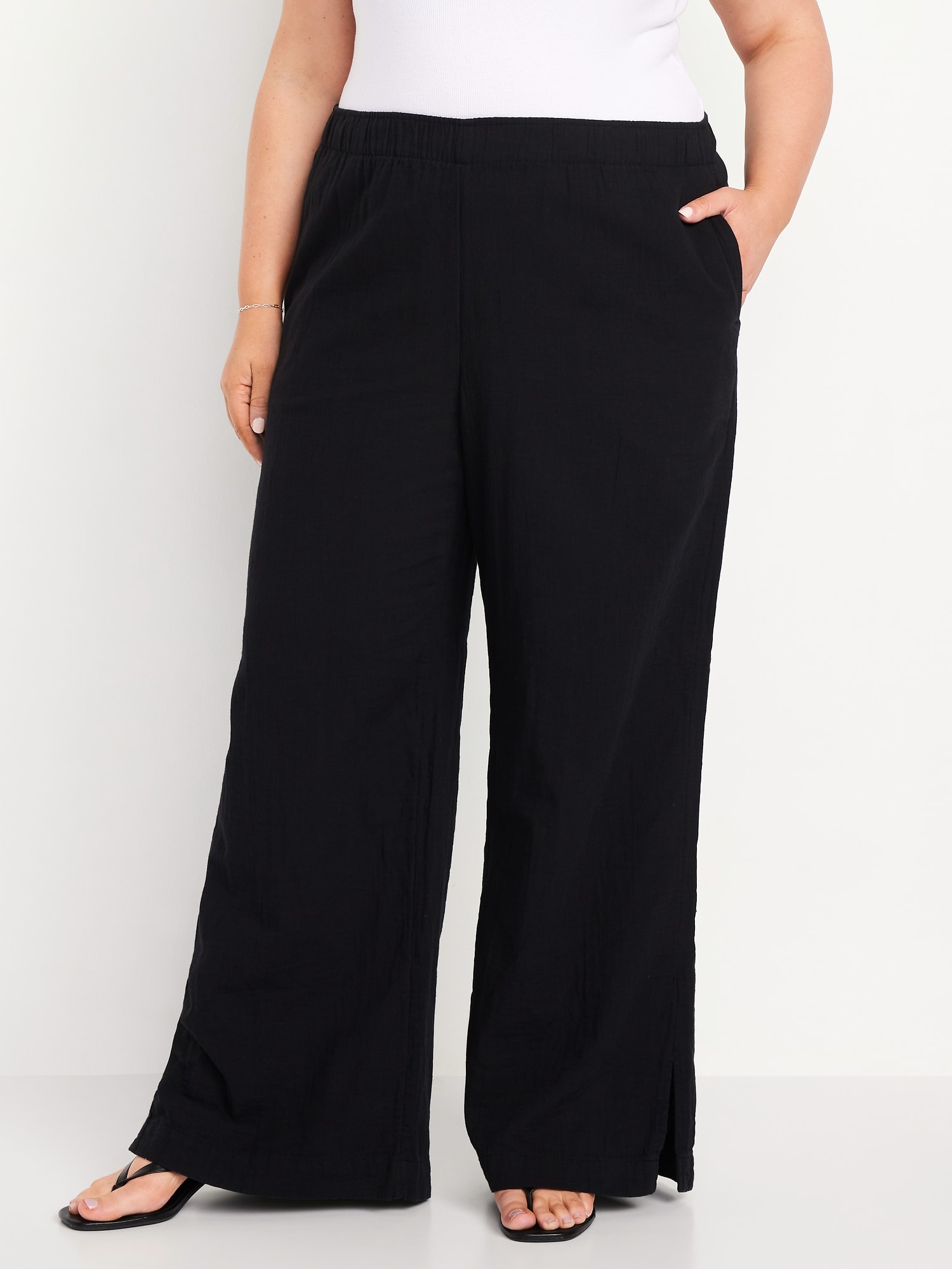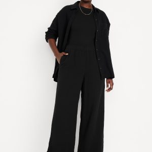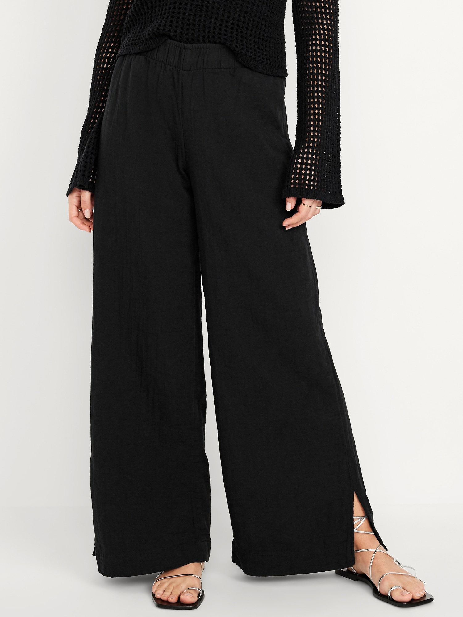 High-Waisted Crinkle Gauze Super Wide-Leg Pants