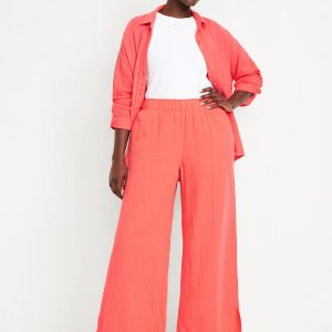 High-Waisted Crinkle Gauze Super Wide-Leg Pants