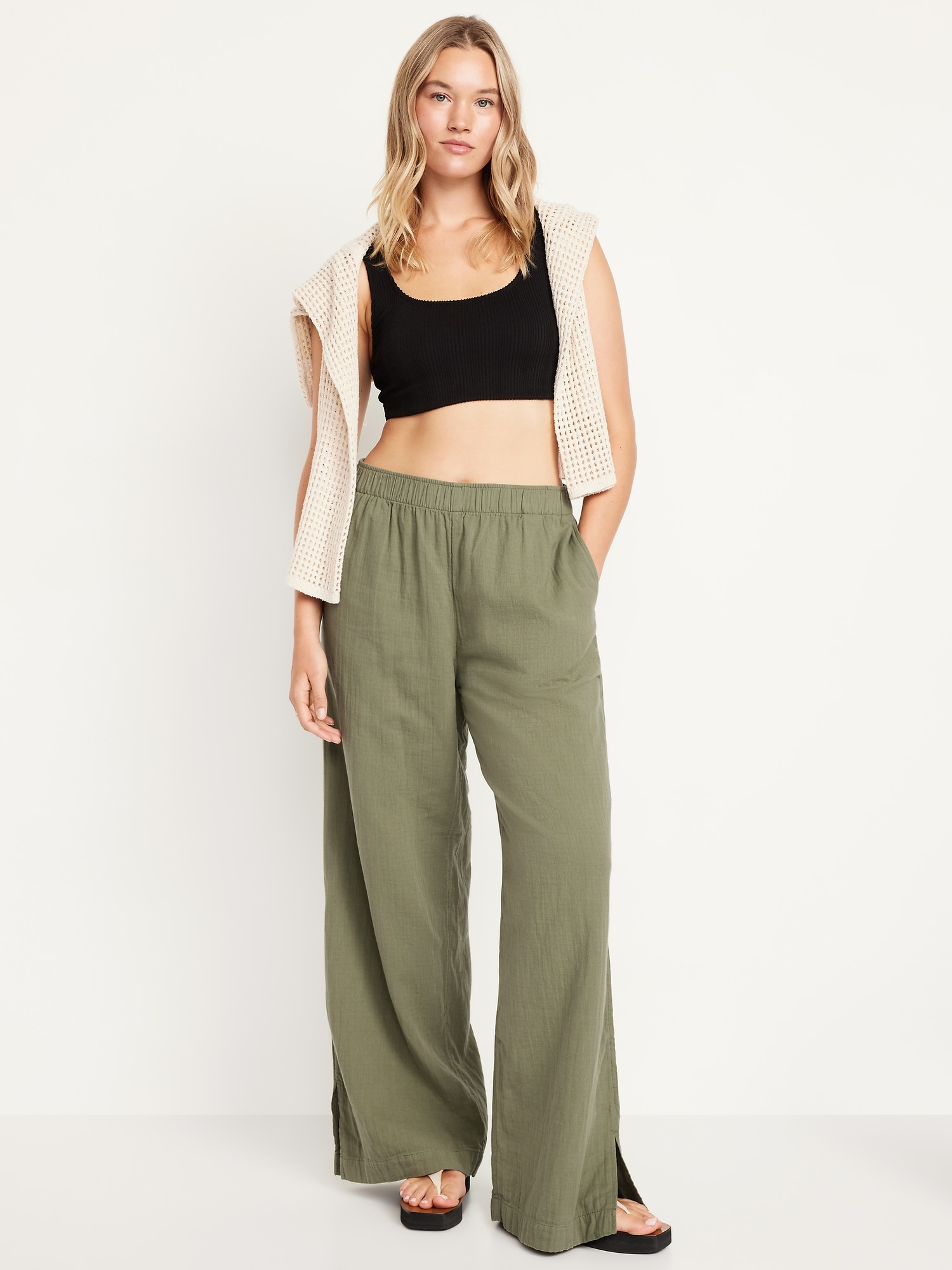 High-Waisted Crinkle Gauze Super Wide-Leg Pants