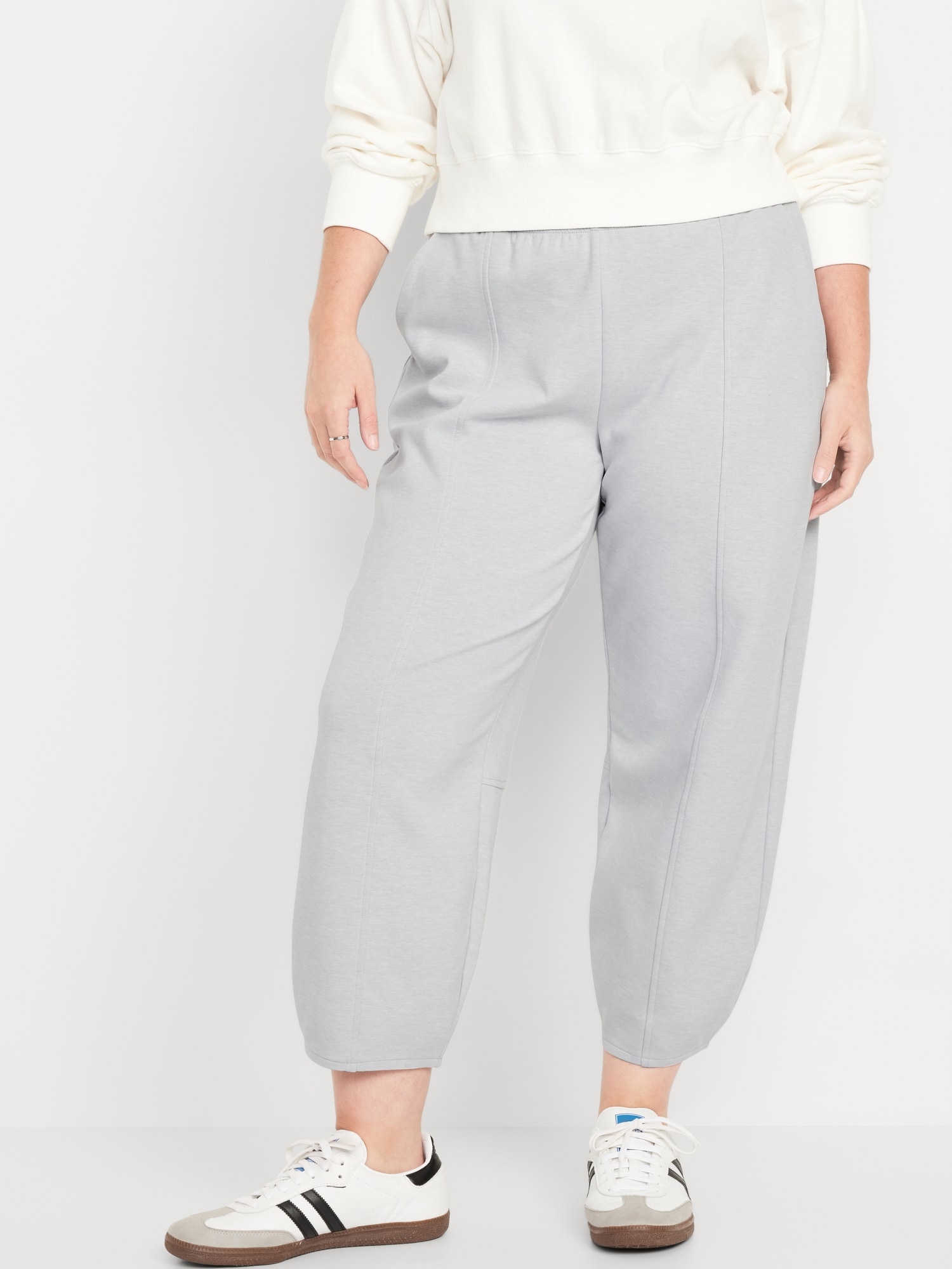 High-Waisted Dynamic Fleece Barrel-Leg Sweatpants: Featuring Dynamic Fleece. Soft, smooth fleece plus made-to-move stretch.elasticized waist, front pockets, seamed front leg, breathable, pull-on style, #569578