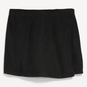 High-Waisted Faux-Wrap Linen-Blend Mini Skort: faux-wrap front, elastic back waist, built-in shorts, #766917