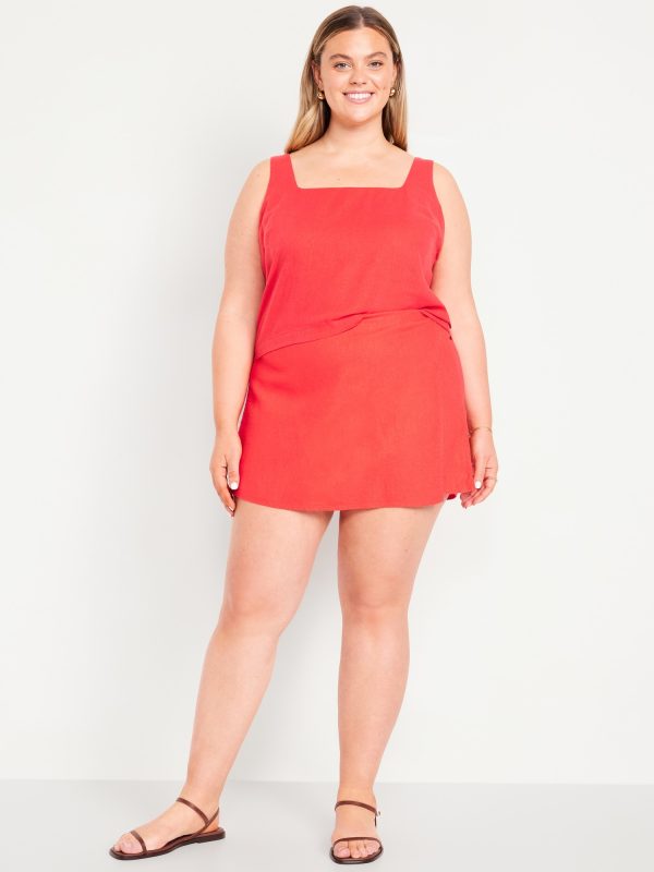 High-Waisted Faux-Wrap Linen-Blend Mini Skort: faux-wrap front, elastic back waist, built-in shorts, #766917