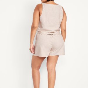 High-Waisted Faux-Wrap Linen-Blend Mini Skort: faux-wrap front, elastic back waist, built-in shorts, #766917
