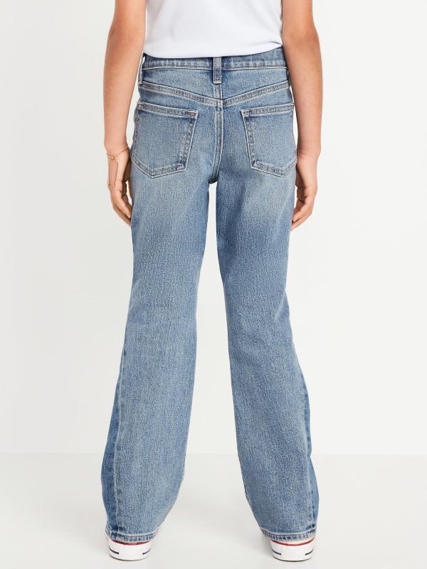 High-Waisted Flare-Leg Jeans for Girls: The it fits she really, really wants.interior adjustable waistband, sizes 5-8 snap-button closure, sizes 10-20 regular button closure, zip fly, utility pockets at front, patch pockets at back, flared leg, #855058
