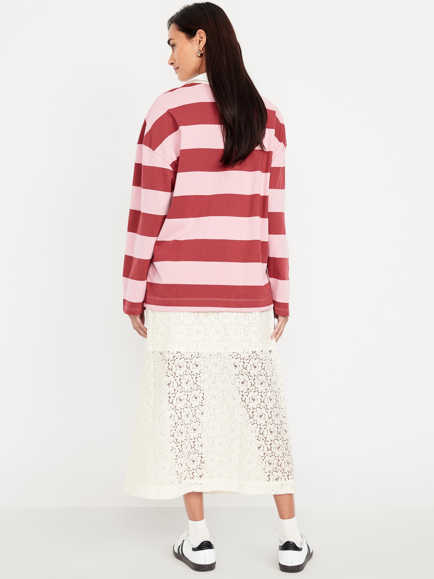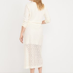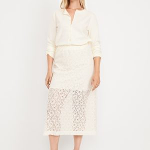 High-Waisted Lace Midi Skirt: elastic waistband, mini-length lining, easy pull-on style, #798241