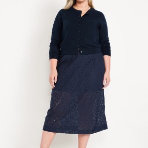 High-Waisted Lace Midi Skirt: elastic waistband, mini-length lining, easy pull-on style, #798241