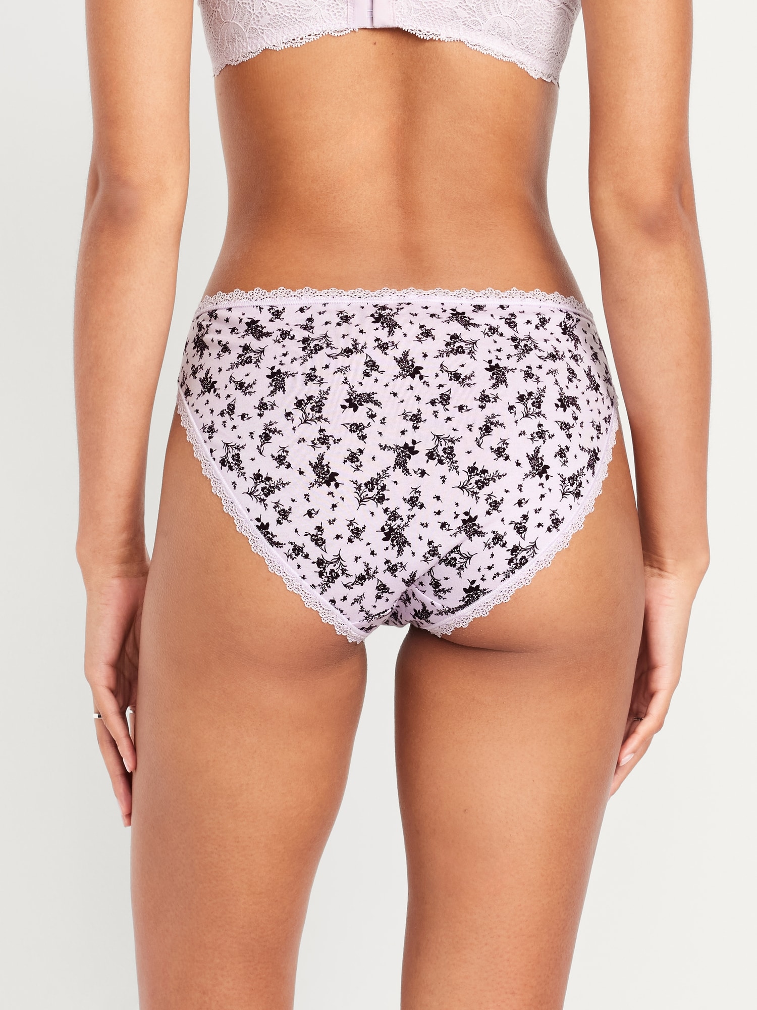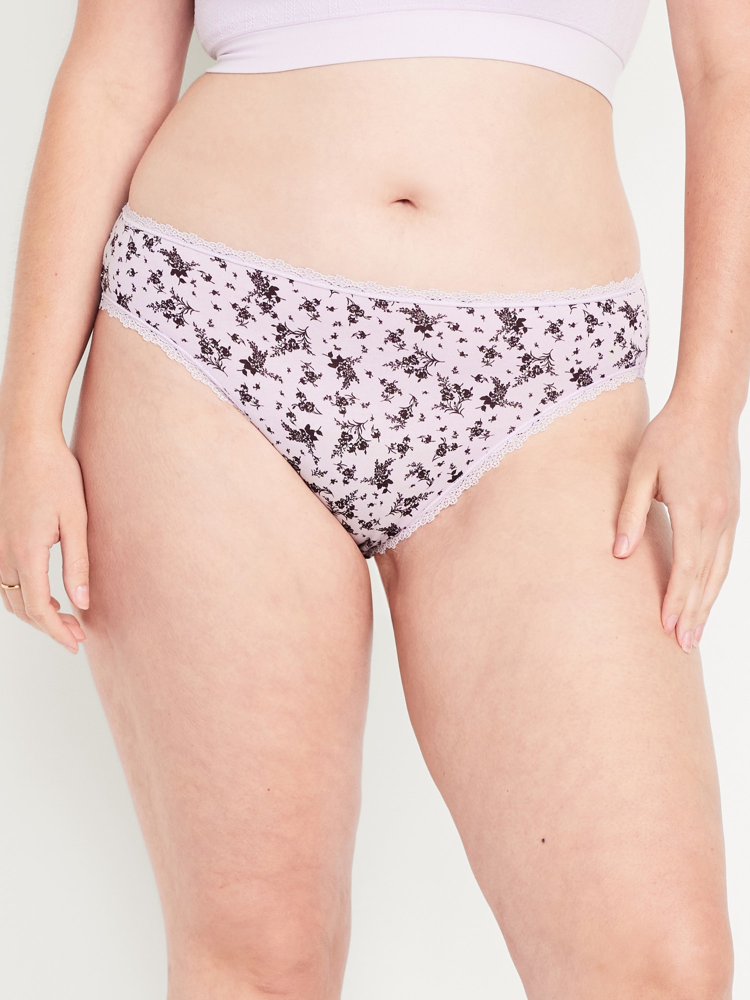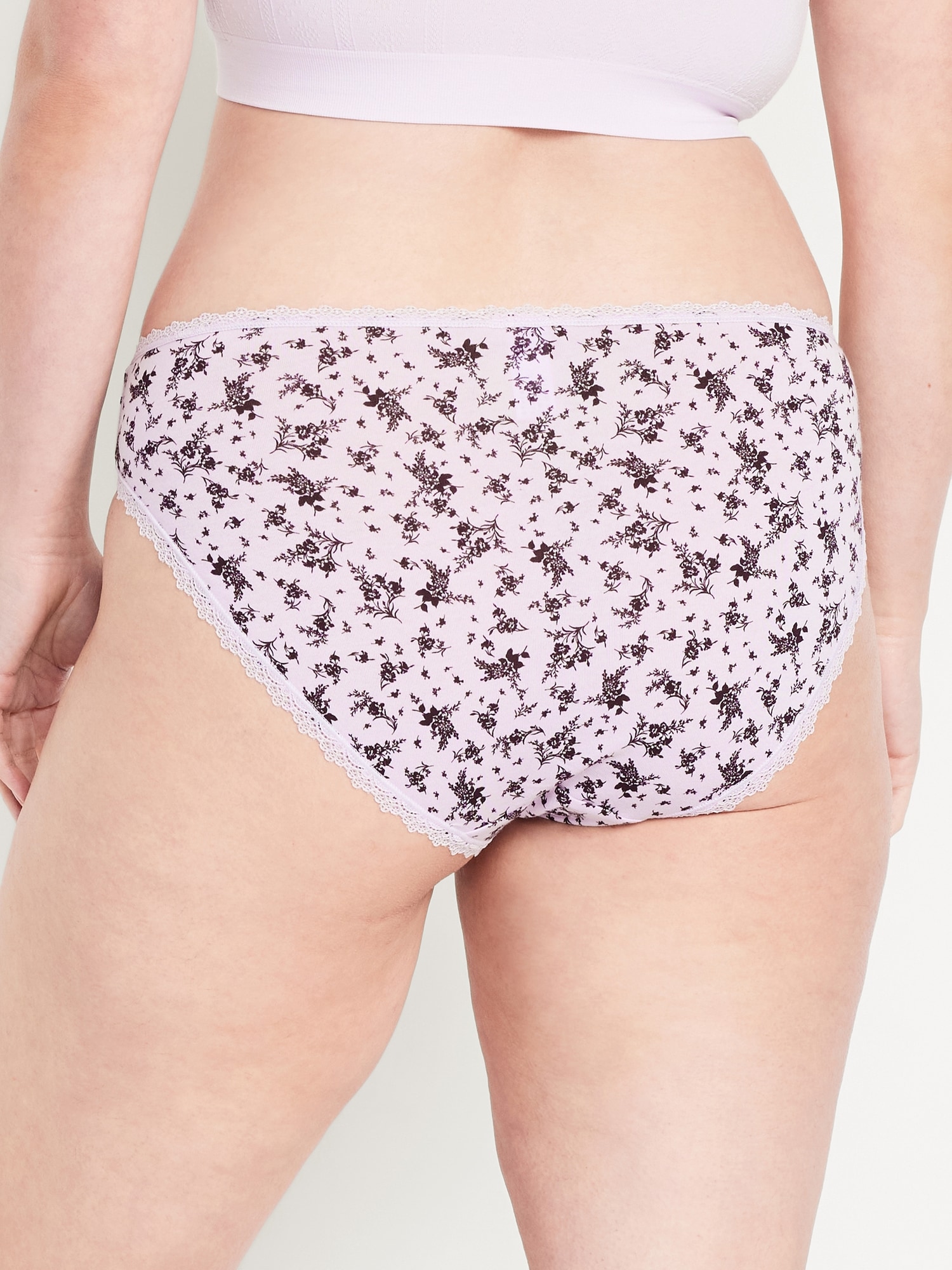 High-Waisted Lace-Trim Bikini Underwear: brushed-elastic waistband, elasticized leg, #575385