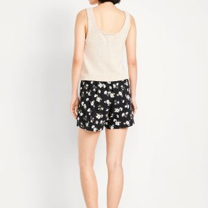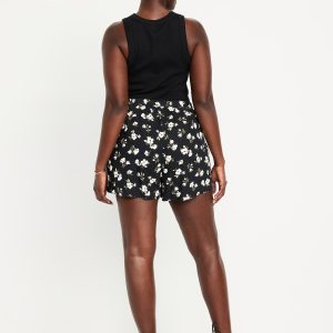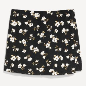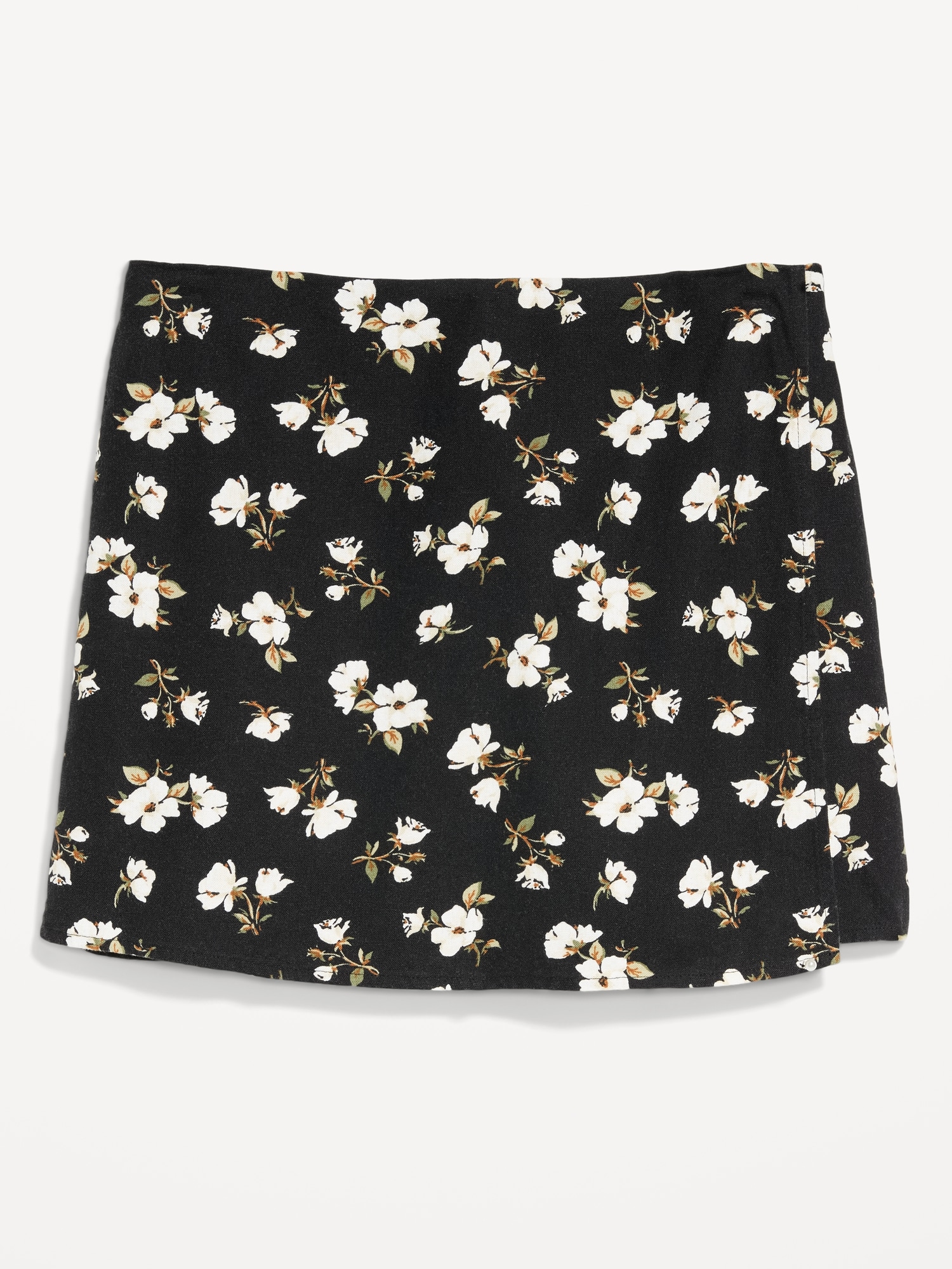 High-Waisted Linen-Blend Mini Skort: faux-wrap front, elastic back waist, built-in shorts, #766917