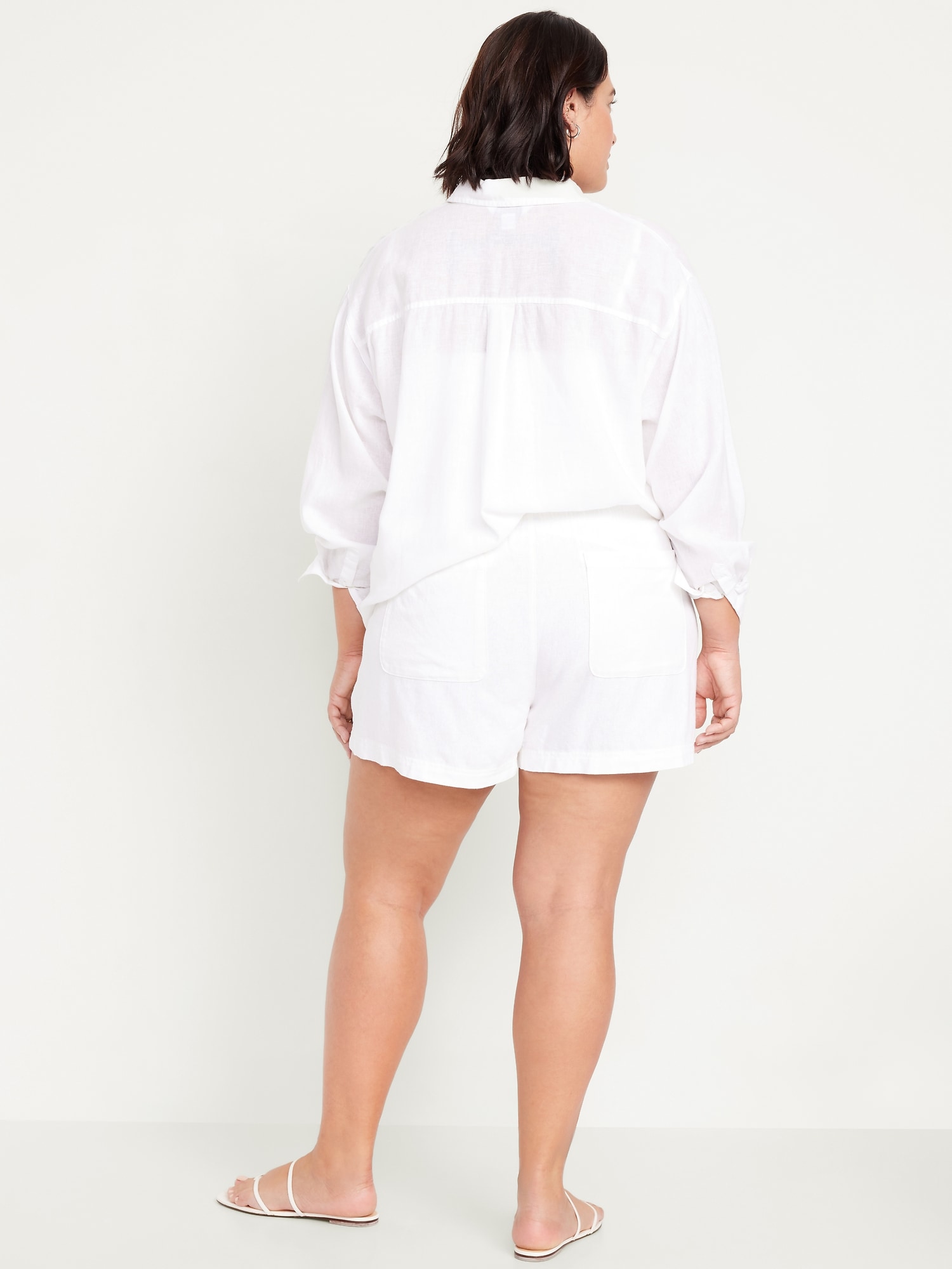 High-Waisted Linen-Blend Pull-On Shorts — 3.5-inch inseam