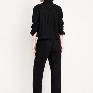 High-Waisted Linen-Blend Straight Ankle Pants