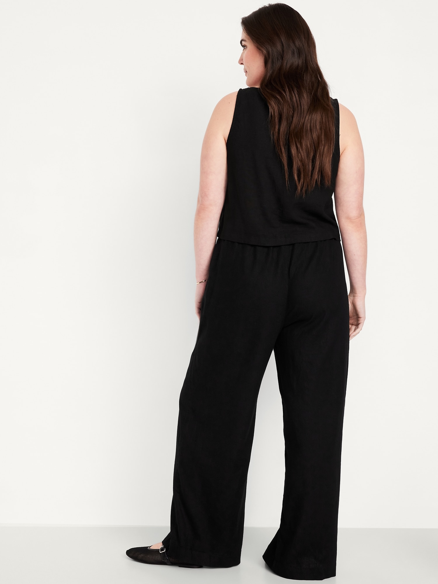 High-Waisted Linen-Blend Super Wide-Leg Pants