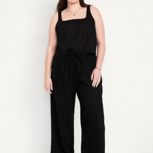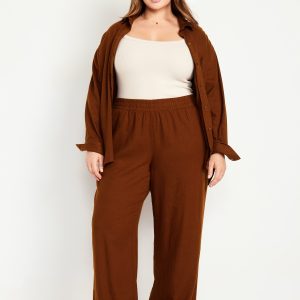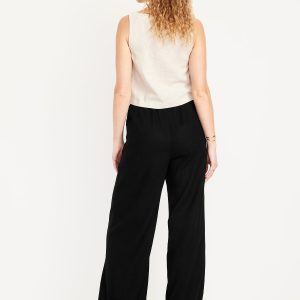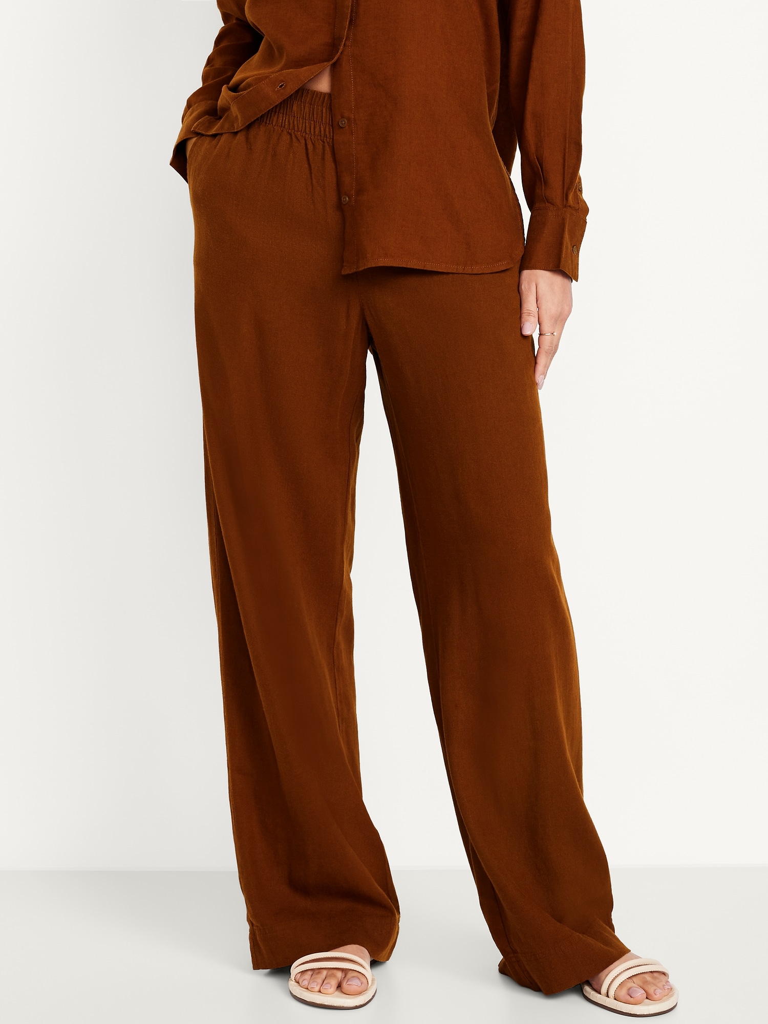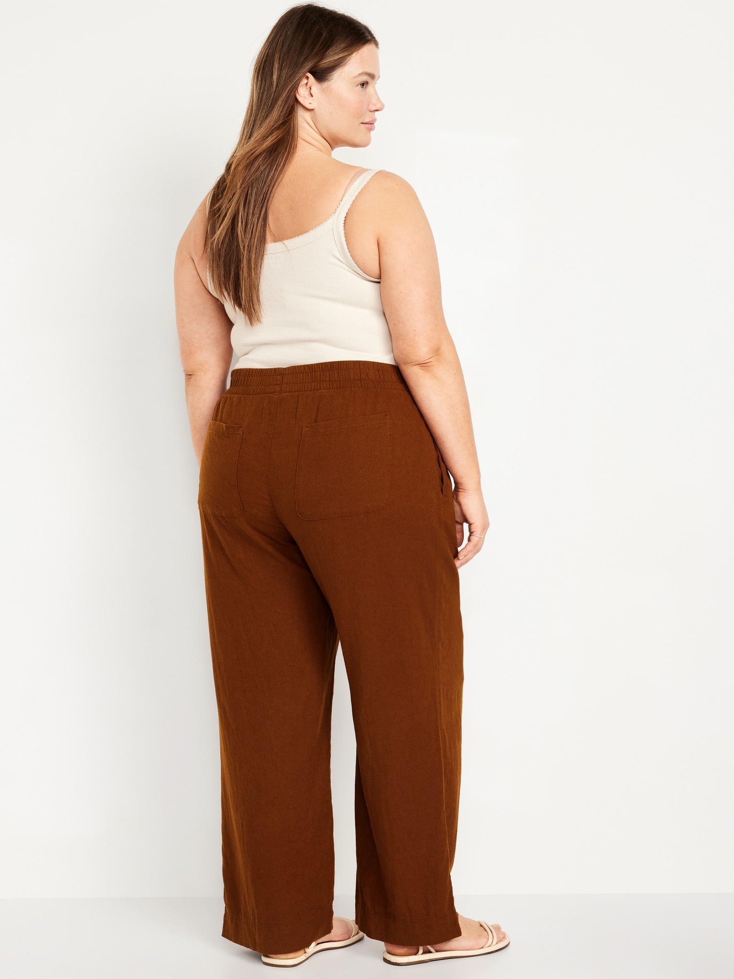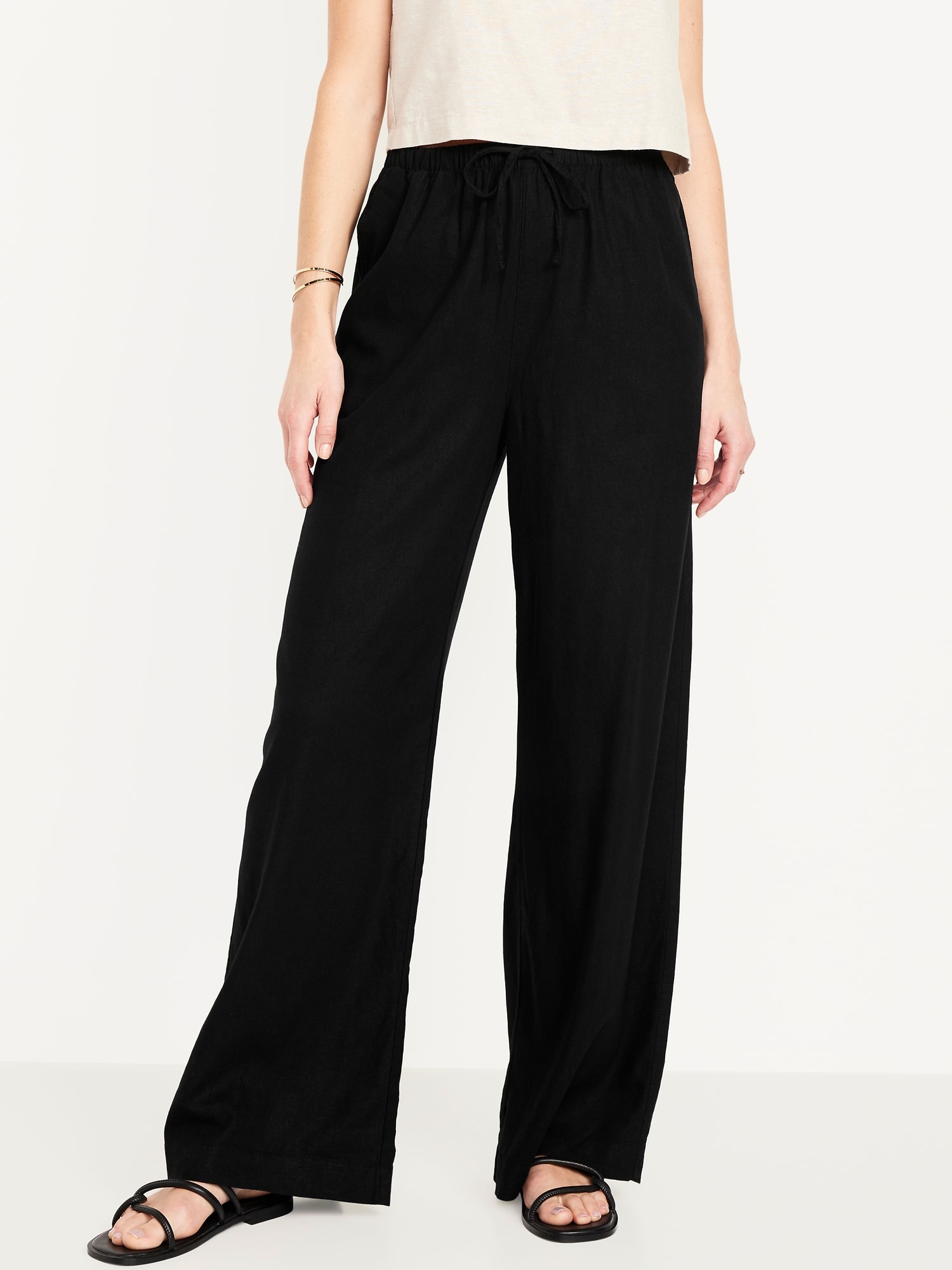 High-Waisted Linen-Blend Wide-Leg Pants: elastic-drawstring high waistband, on-seam hip pockets, super wide leg, easy pull-on style, online exclusive, #683345