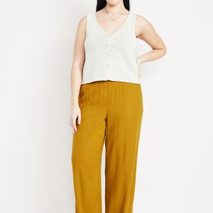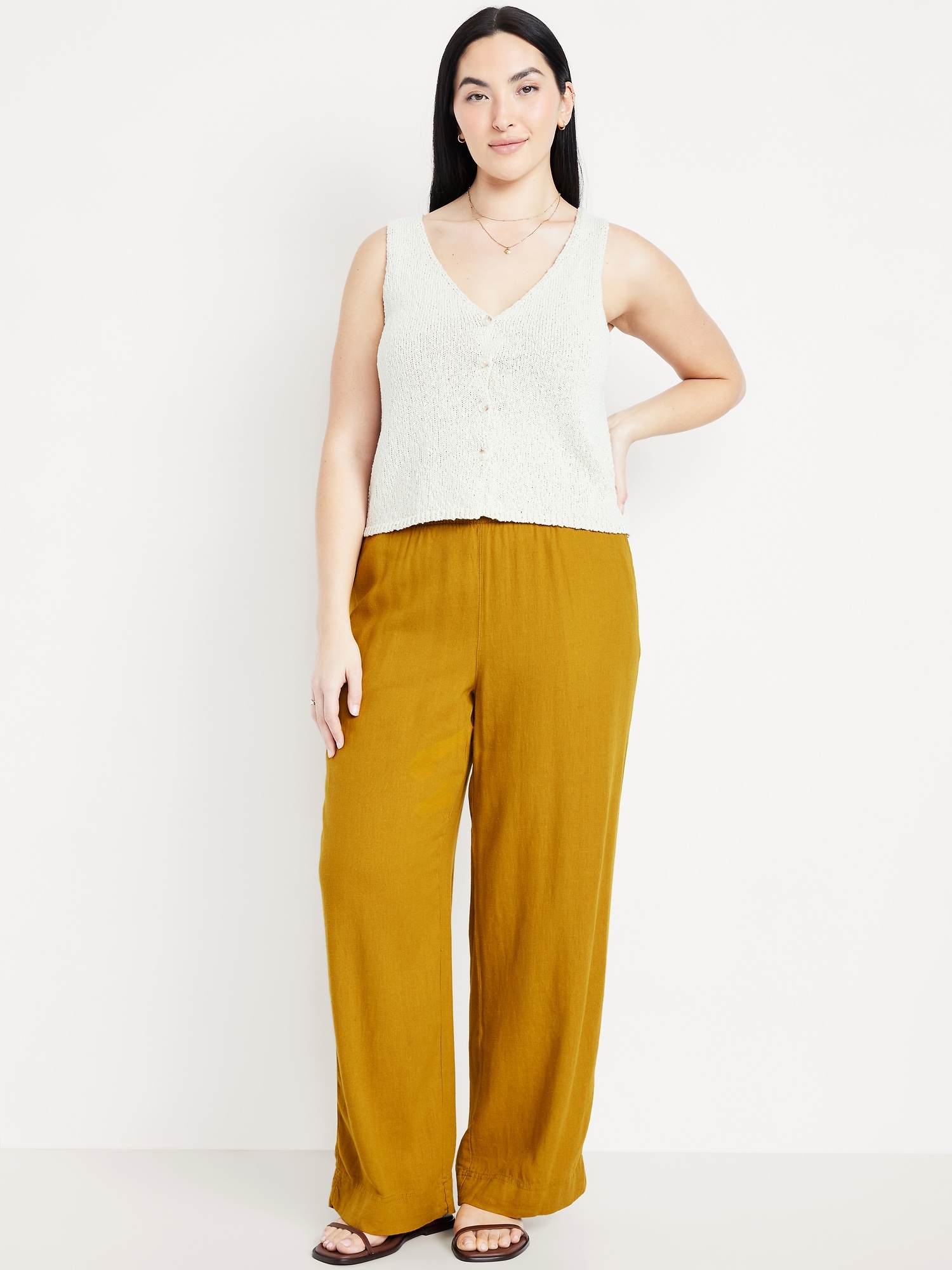 High-Waisted Linen-Blend Wide-Leg Pants