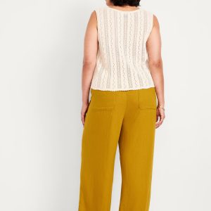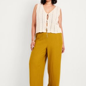 High-Waisted Linen-Blend Wide-Leg Pants: elastic-drawstring high waistband, on-seam hip pockets, super wide leg, easy pull-on style, online exclusive, #683345